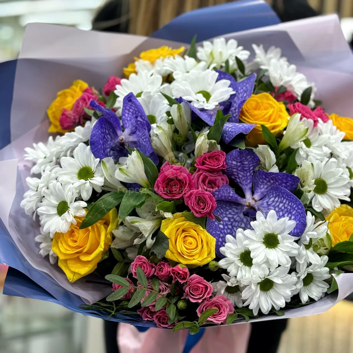 Букет из роз, альстромерии и хризантем