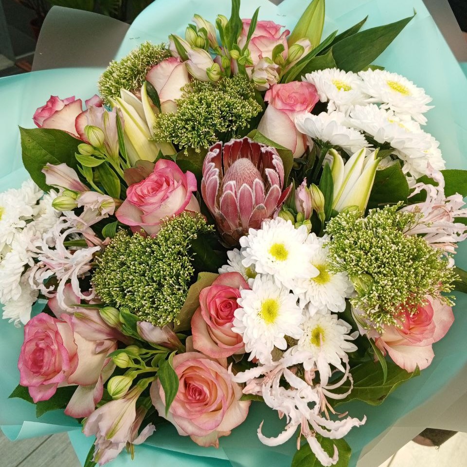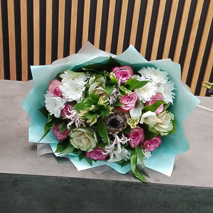 Дополнительно: Брала такой сестре на день рождения, розы и хризантемы её любимые цветы. Ей очень понравился букет, спасибо, что привезли вовремя!