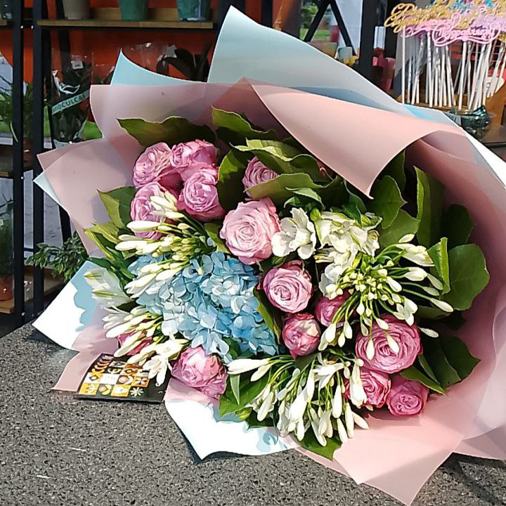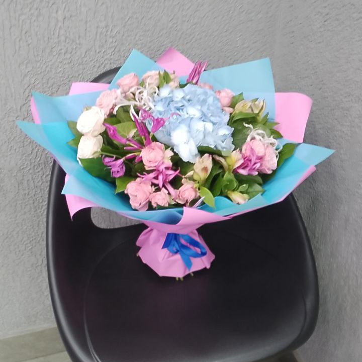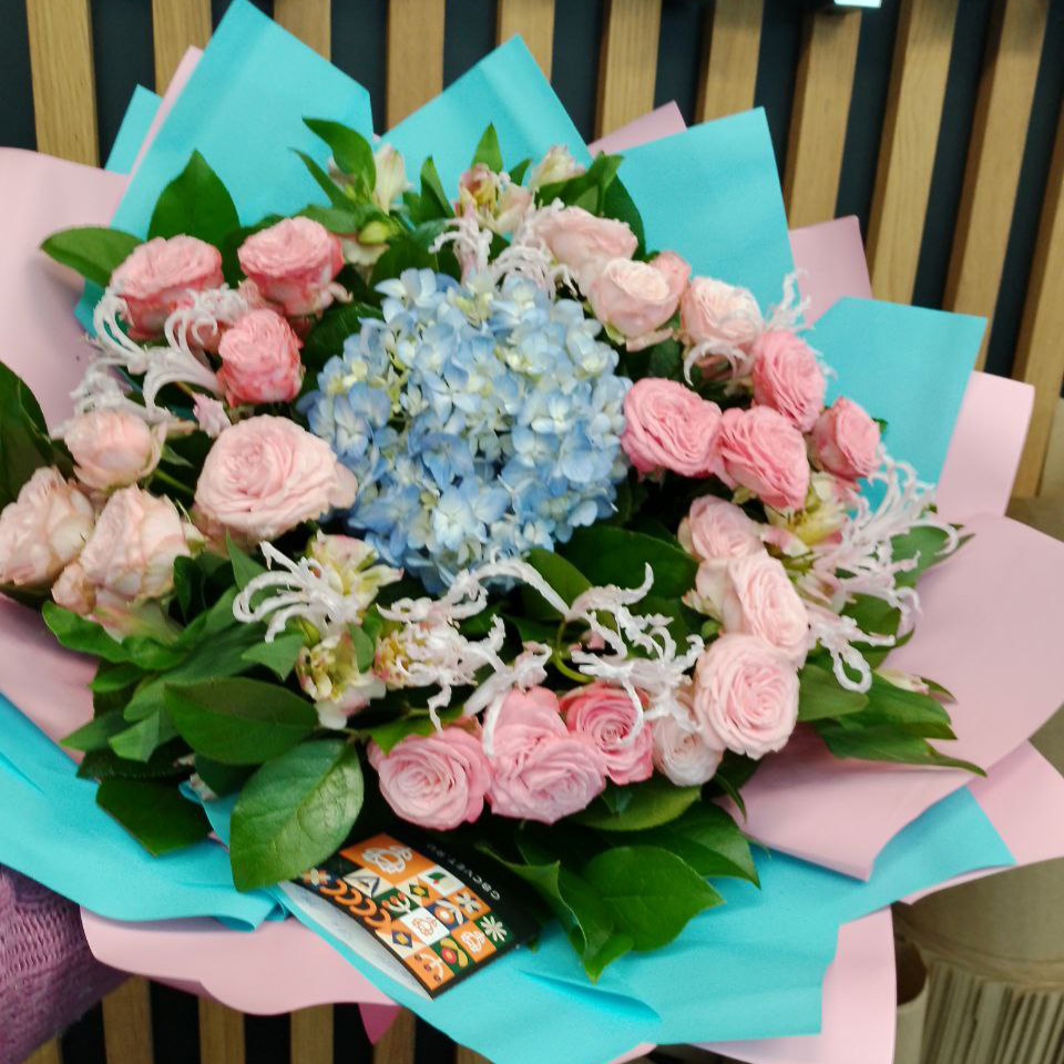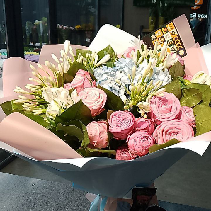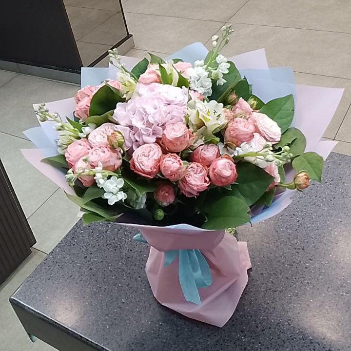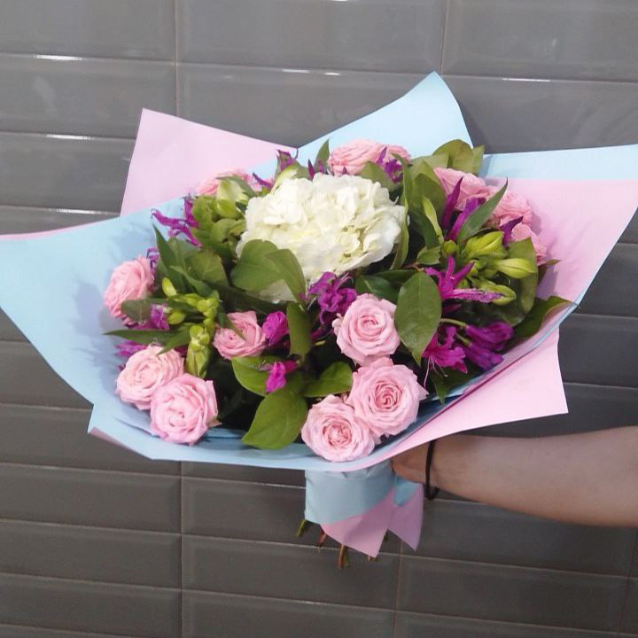 Букет из роз, альстромерии и наринэ