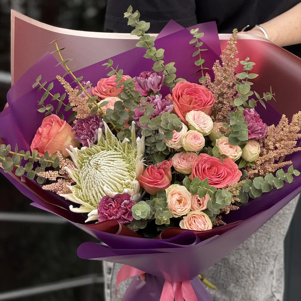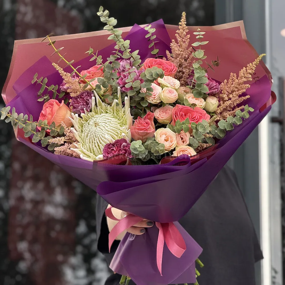 Букет из роз, астильб и гвоздик