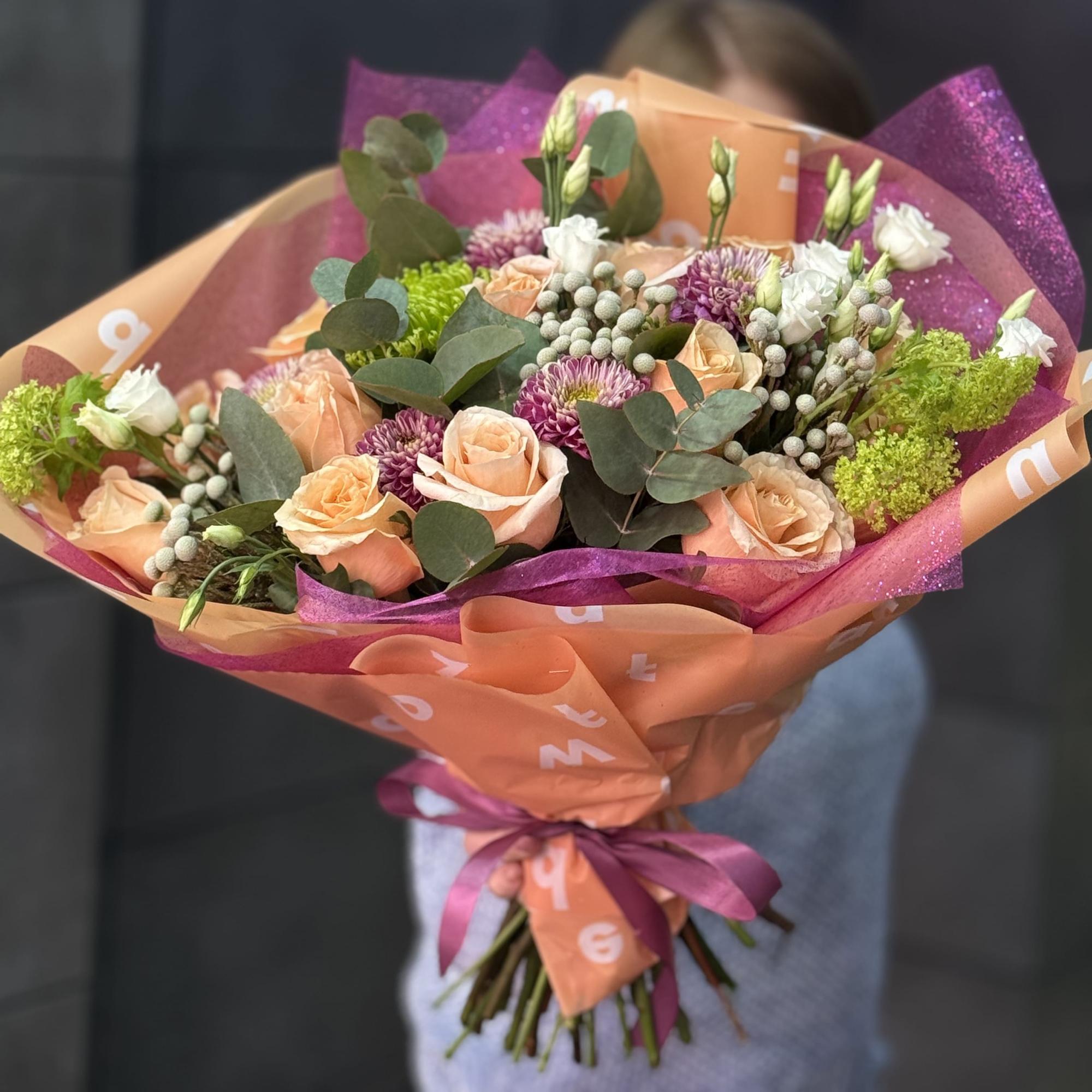 Букет из роз, брунии и хризантем