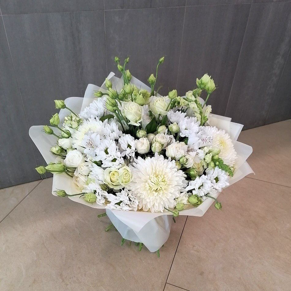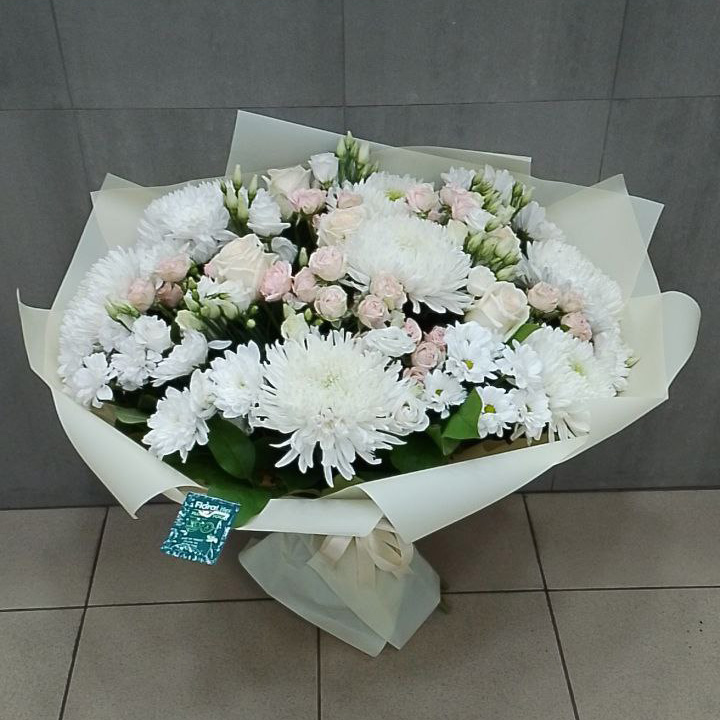 Дополнительно: Букет ну очень красивый, мне сразу понравился, большой и много белого, хризантемы, розы - красивое сочетание. Заказала сестре на день рождения. с доставкой, все отлично довезли, спасибо.