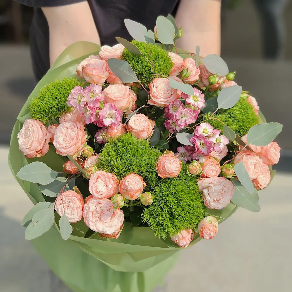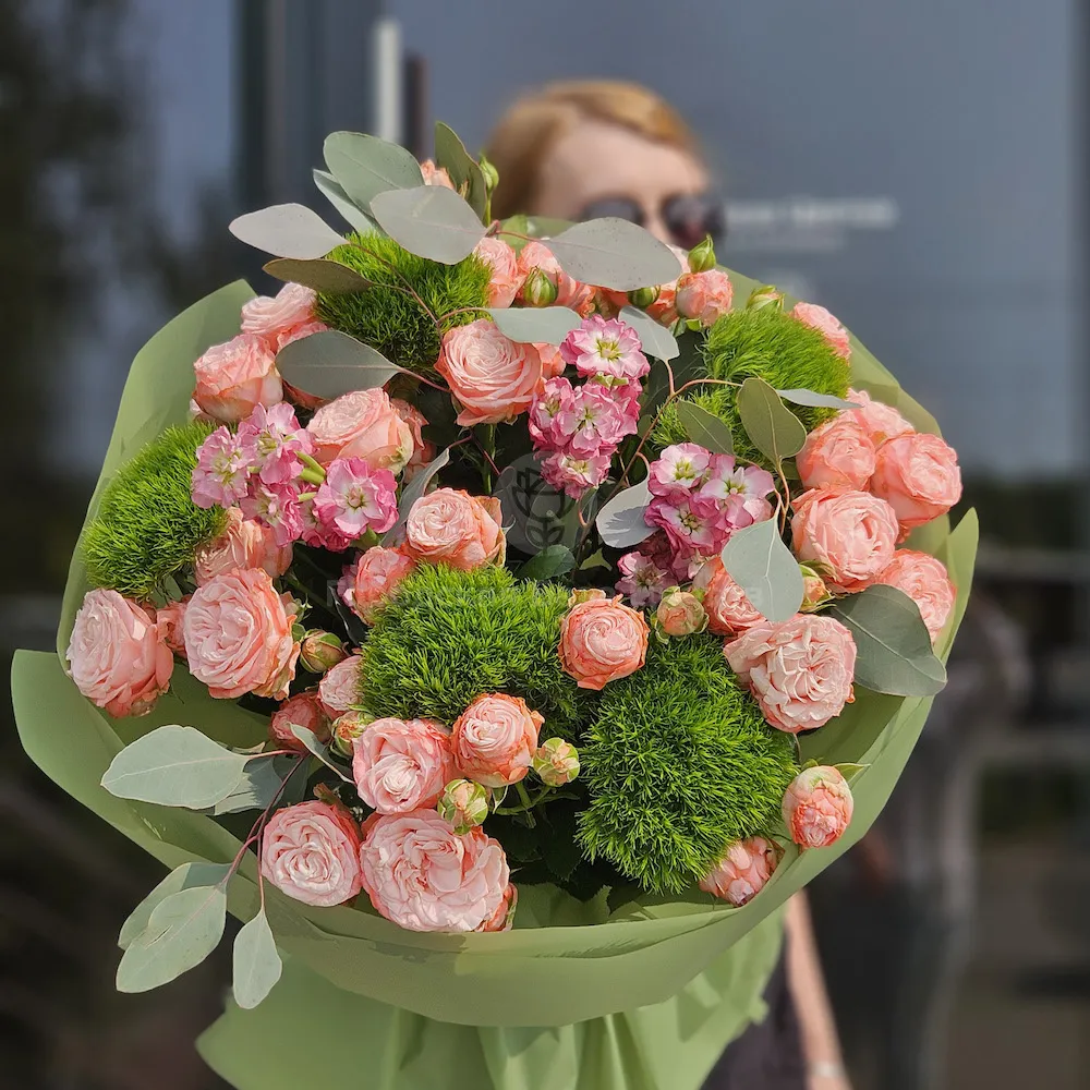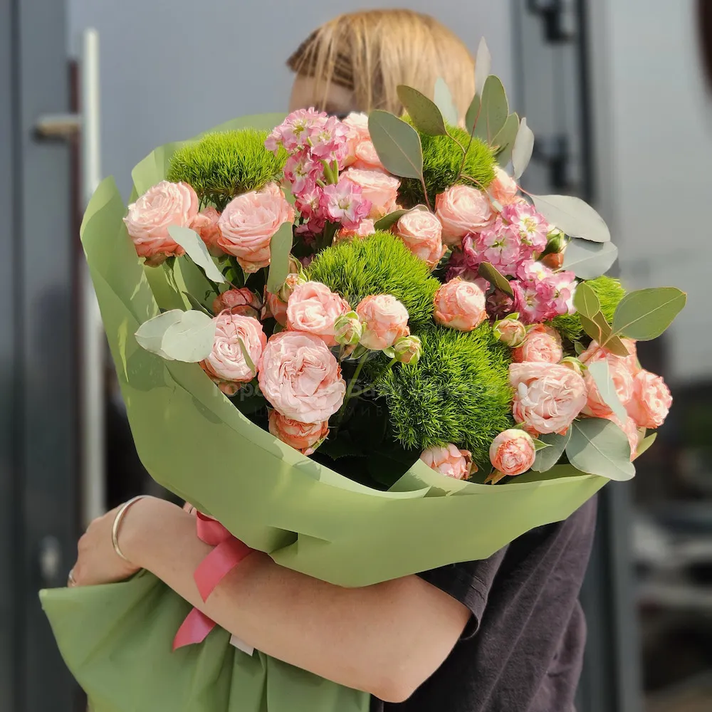 Букет из роз, грин трик и матиолл