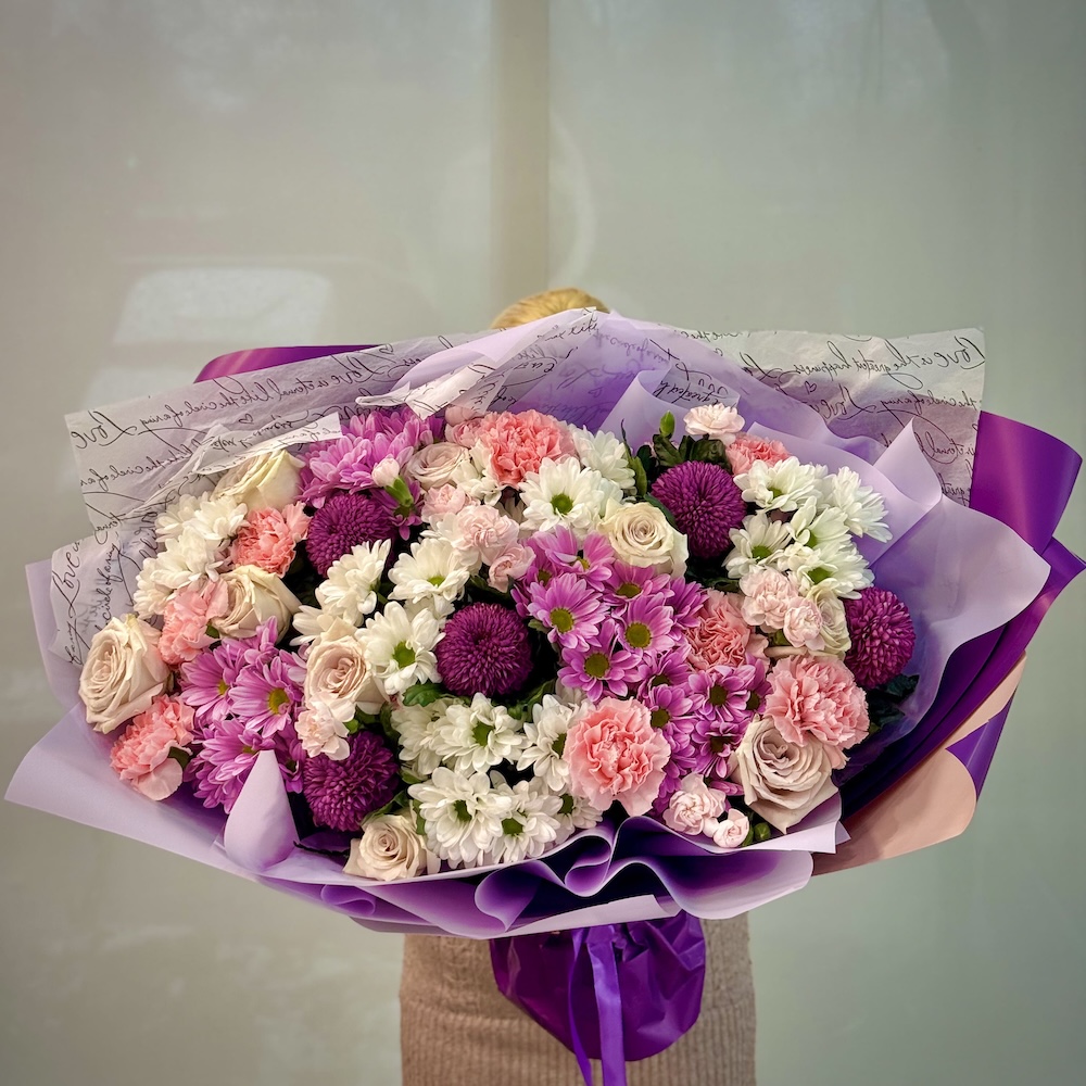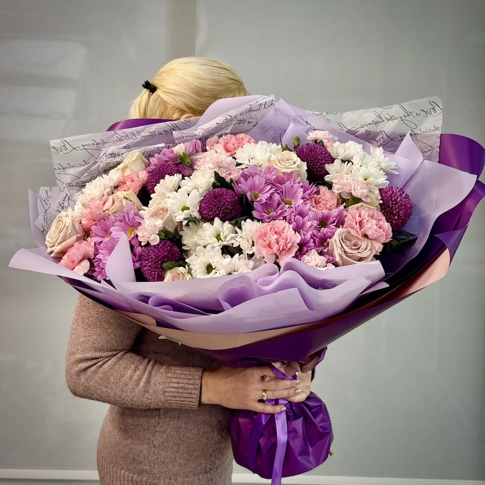 Букет из роз, гвоздик и хризантем