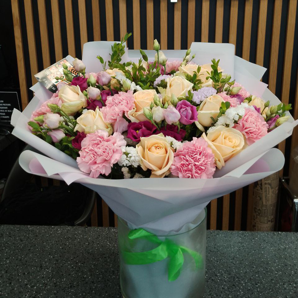 Наша компания заботится о ваших эмоциях и оставляет за собой право незначительно изменить состав и оттенок букета в пользу самого свежего цветка в нашем холодильнике