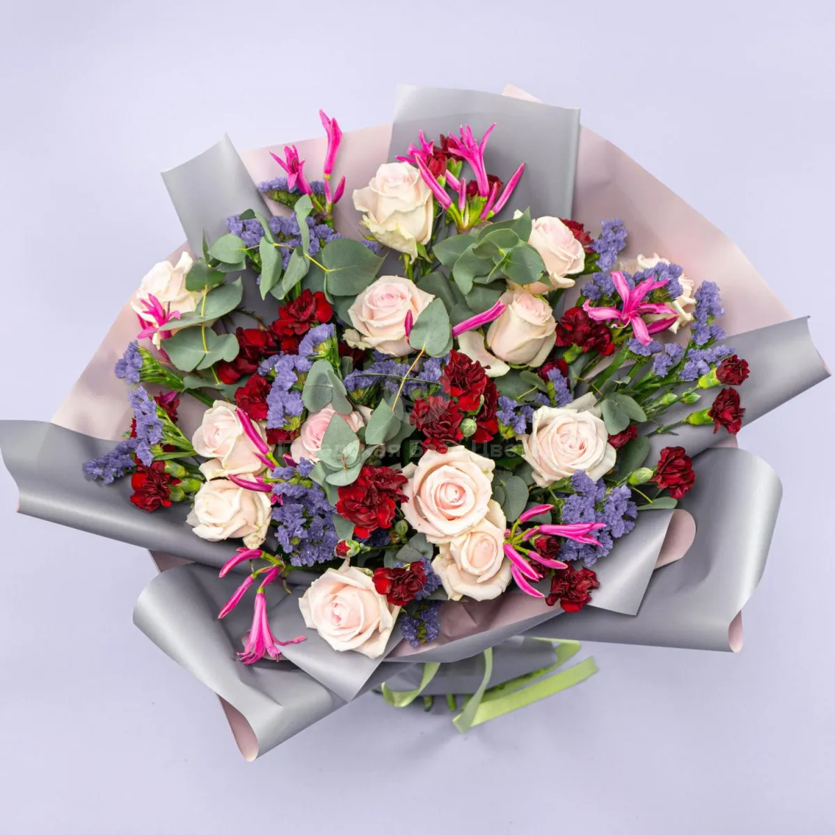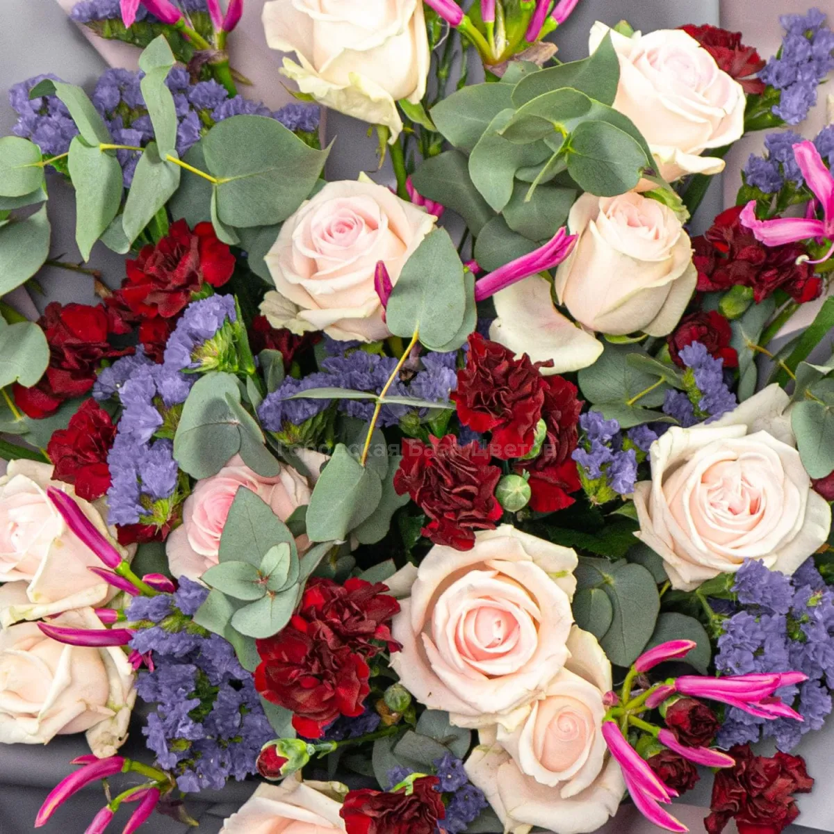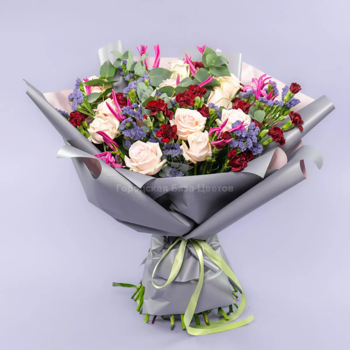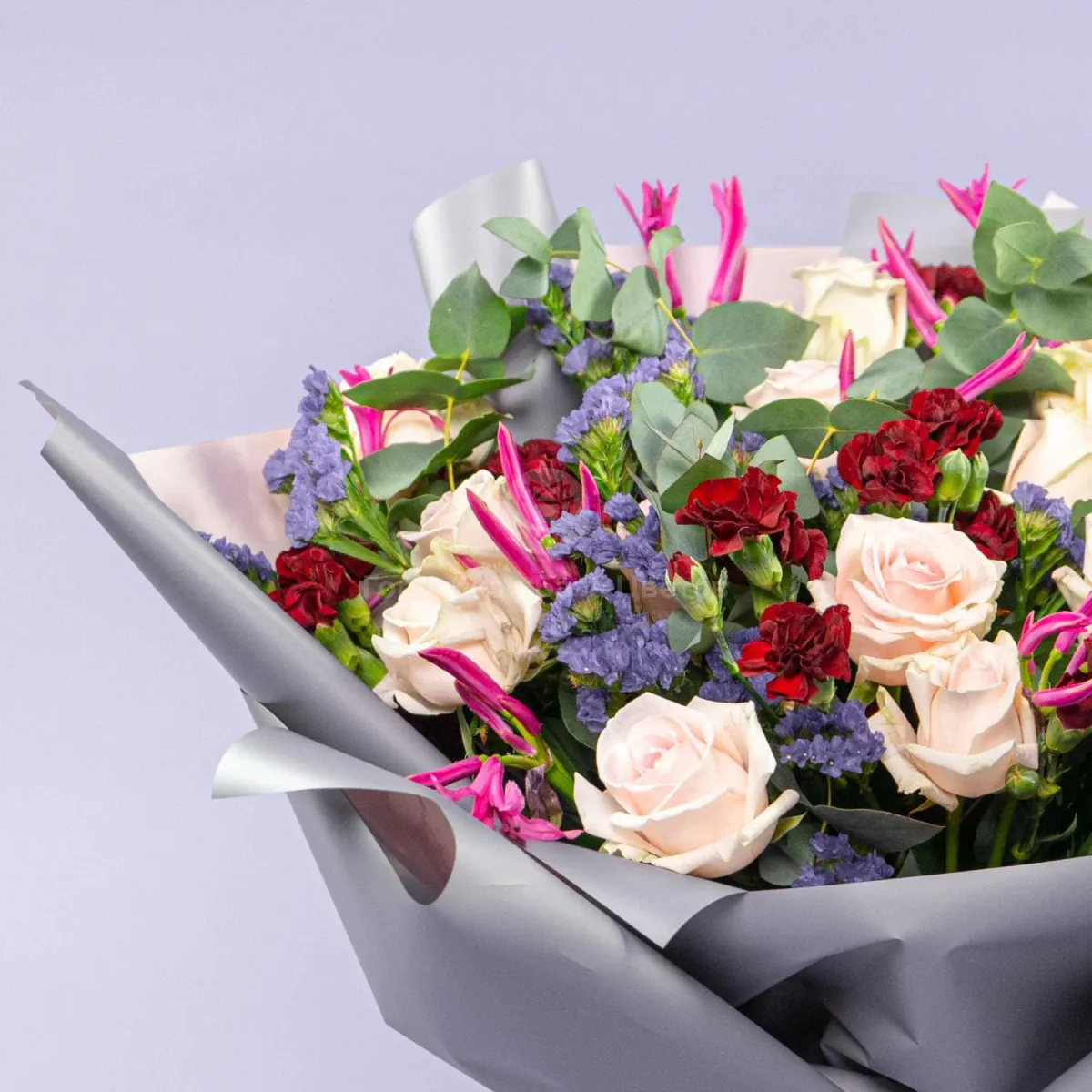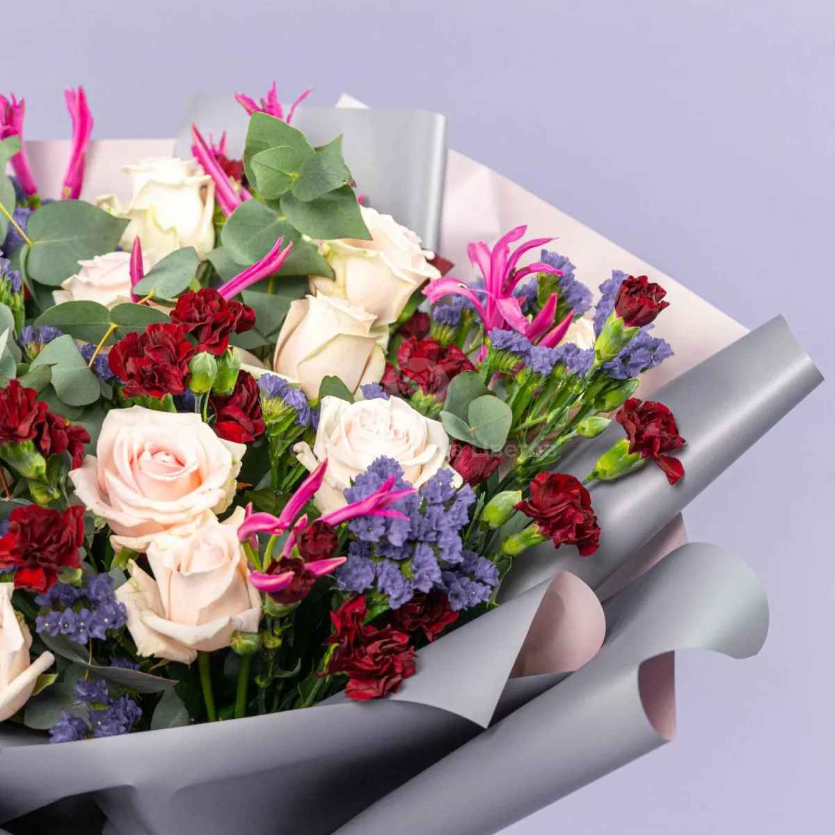 Букет из роз, гвоздик и статицы