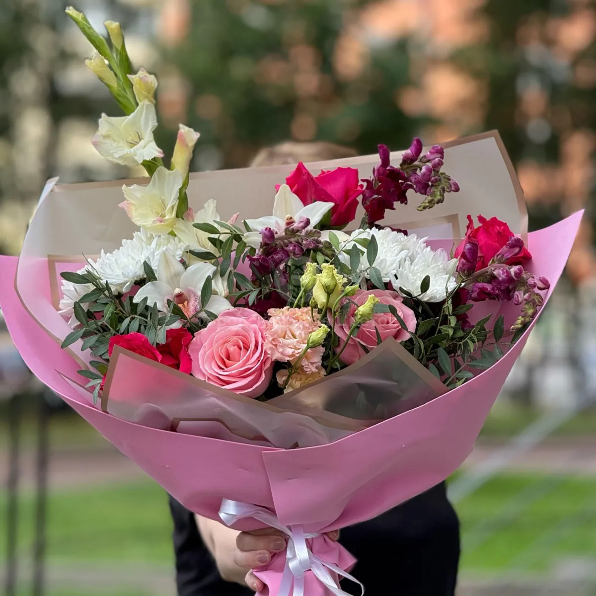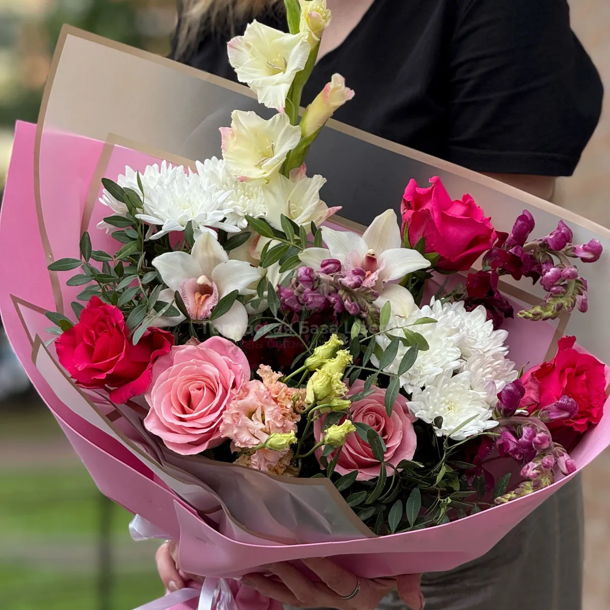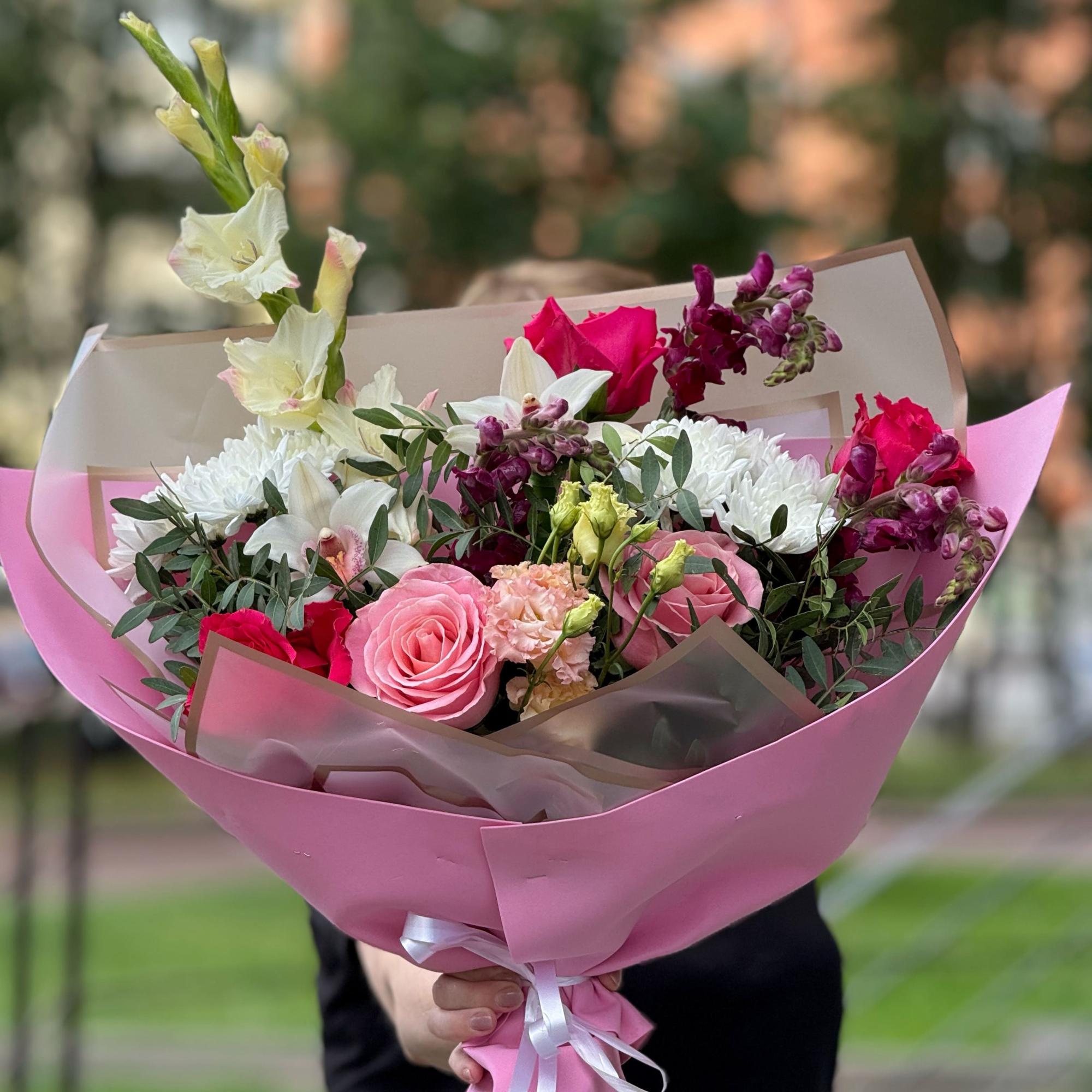 Большой букет из роз и эустом