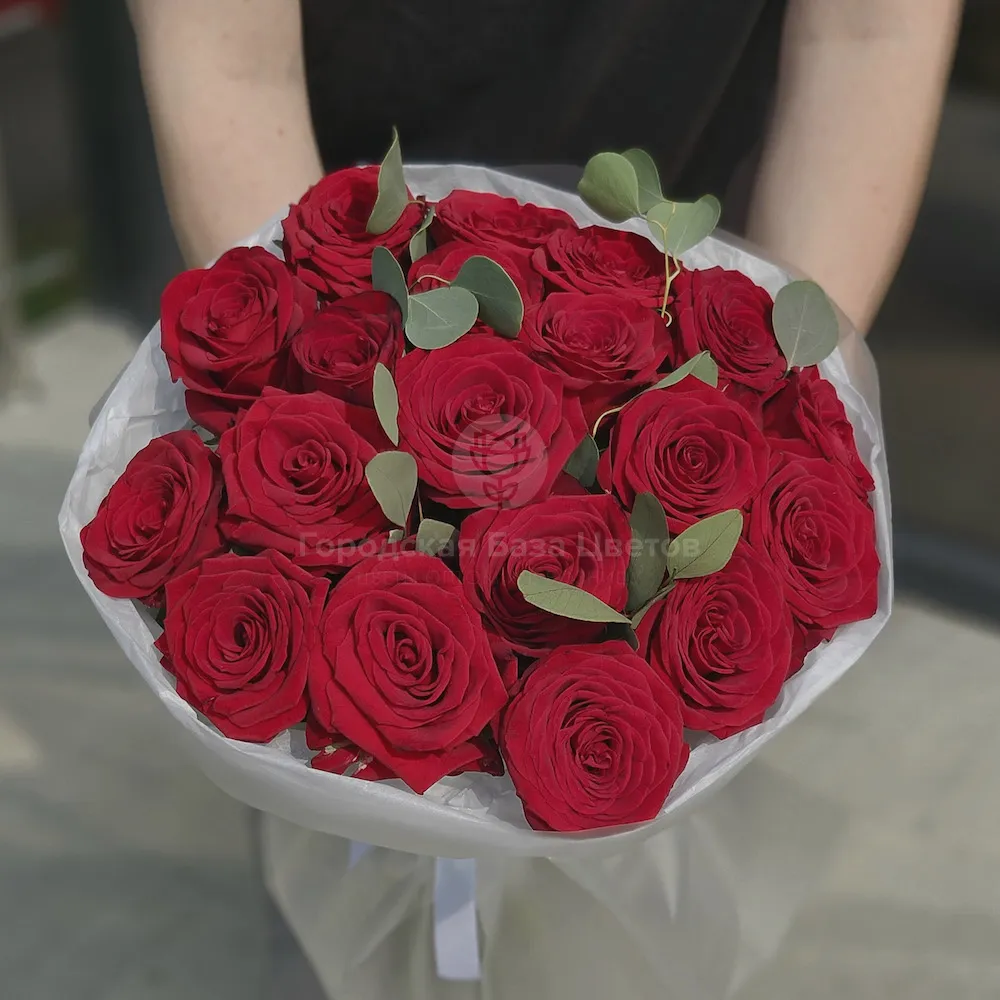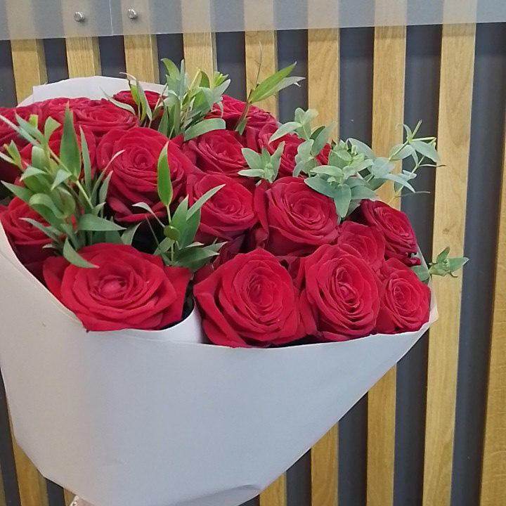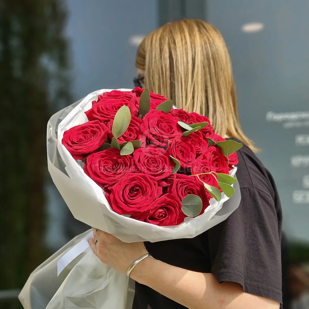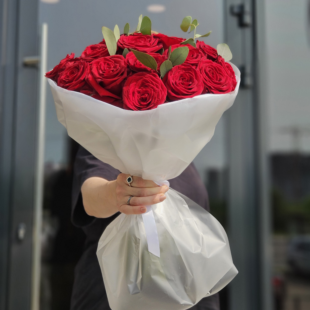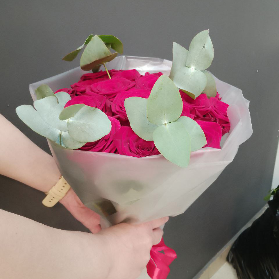 Букет из роз и эвкалипта