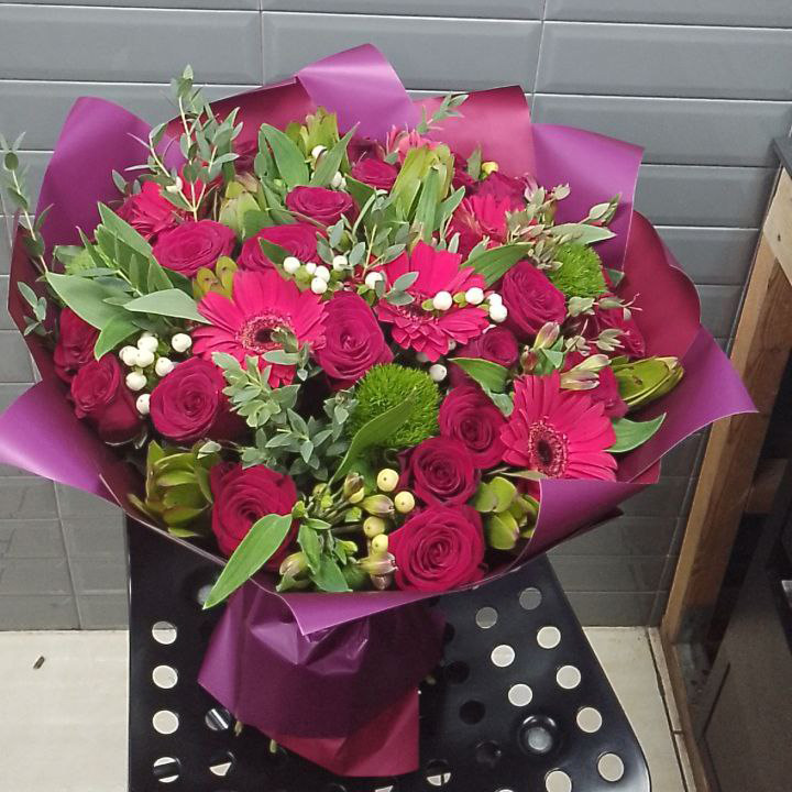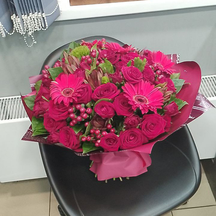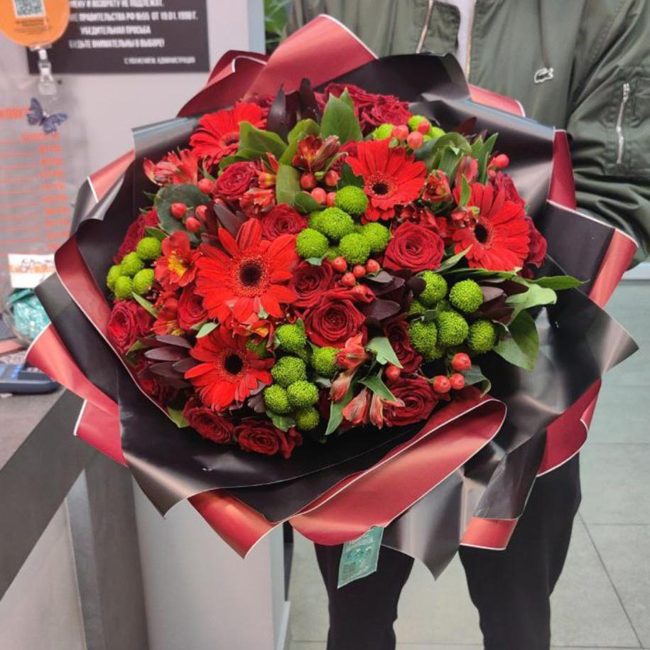 Большой букет из роз и гербер