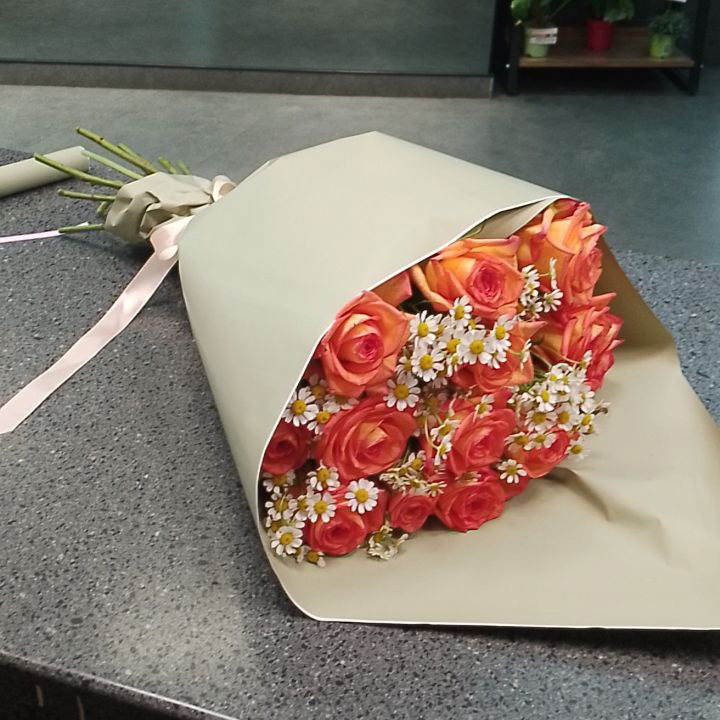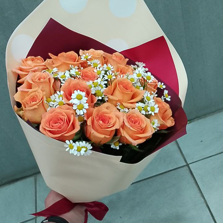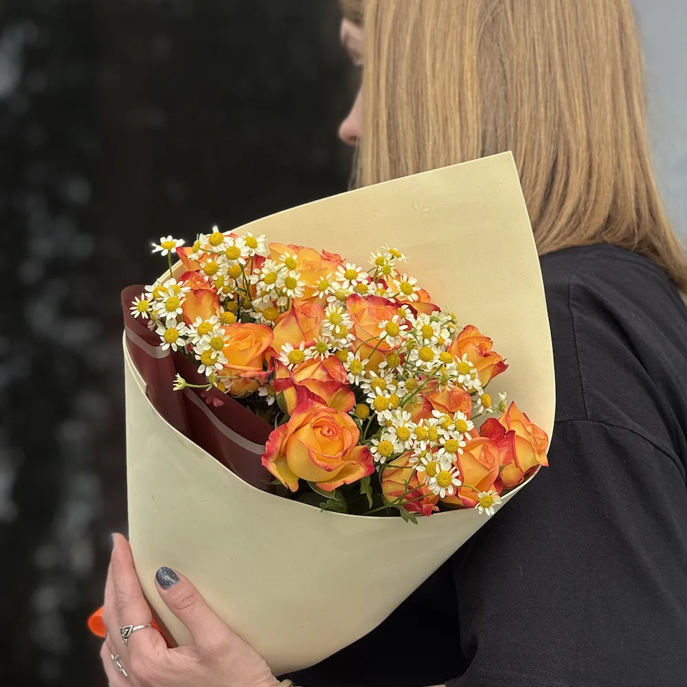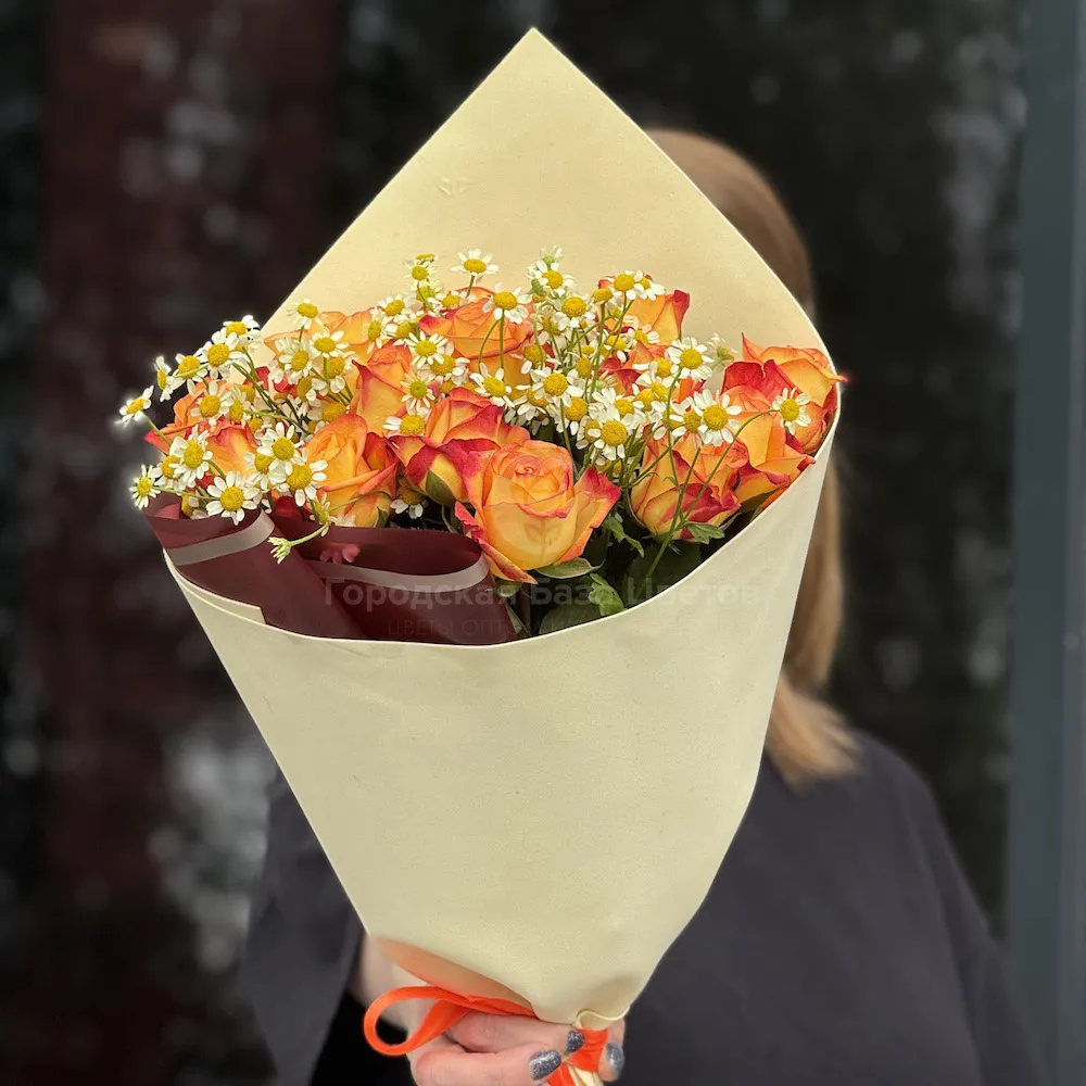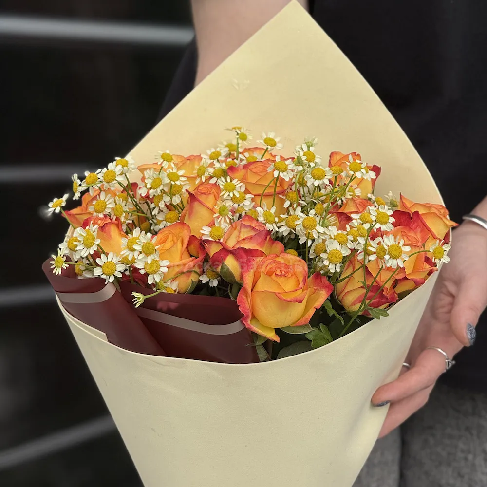 Букет из роз и танацетум