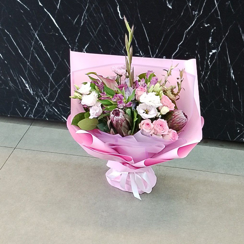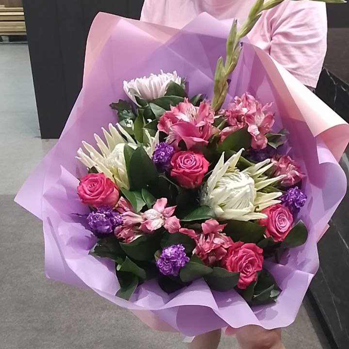 Дополнительно: Букет очень оригинальный и необычный! Поздравляли коллегу, все были в восторге. Теперь со всех отделов идут ко мне, если нужно заказать цветы)