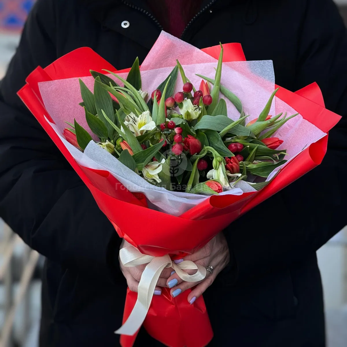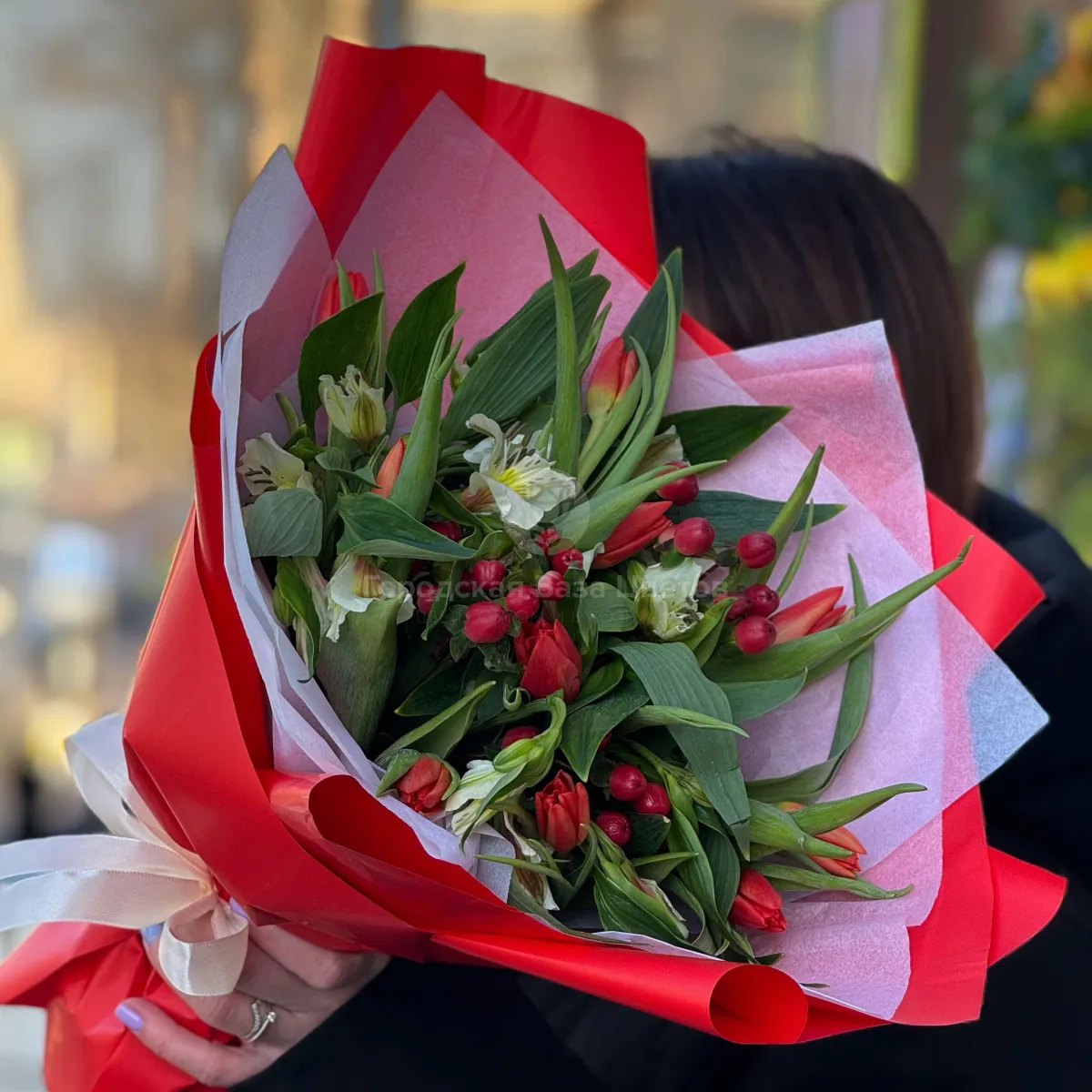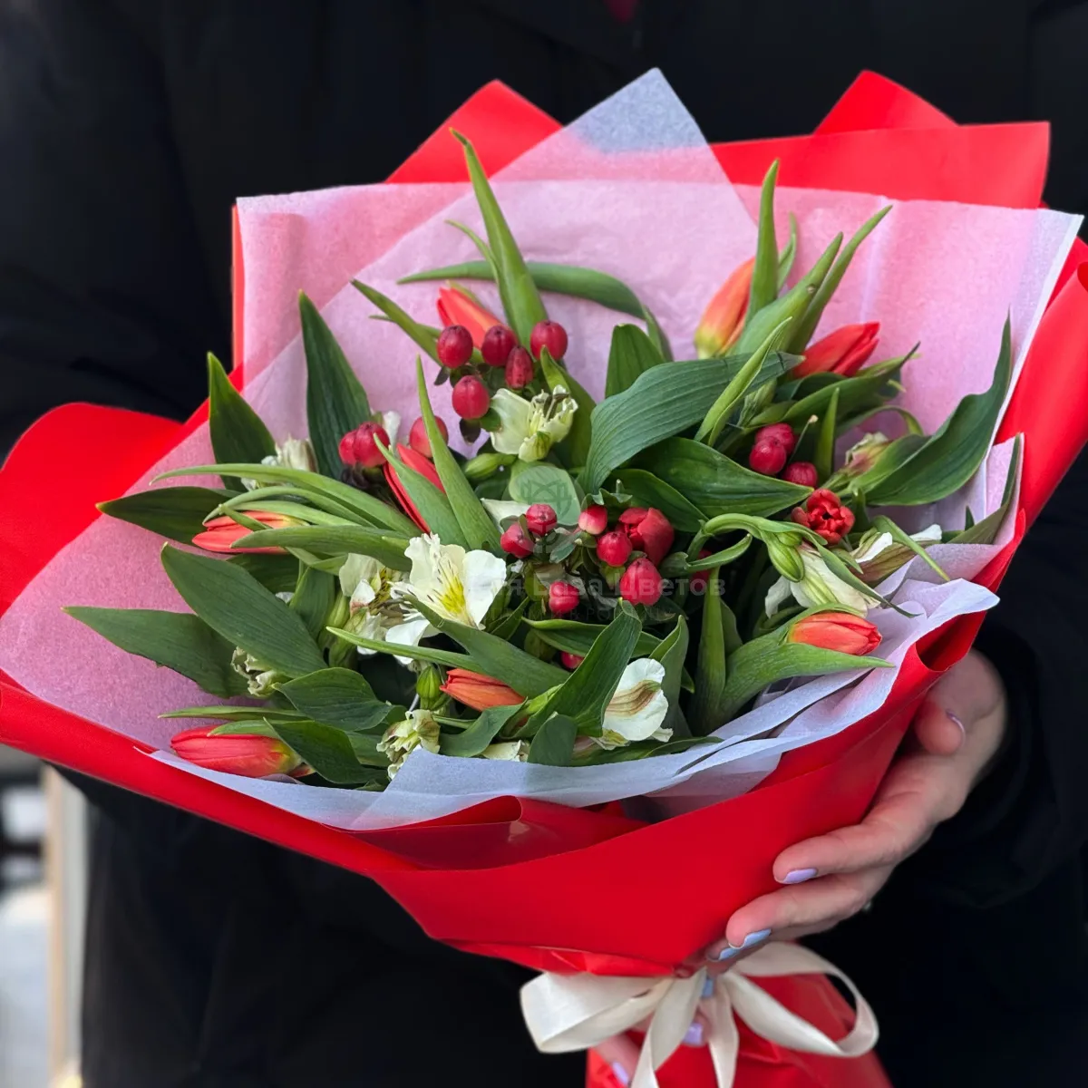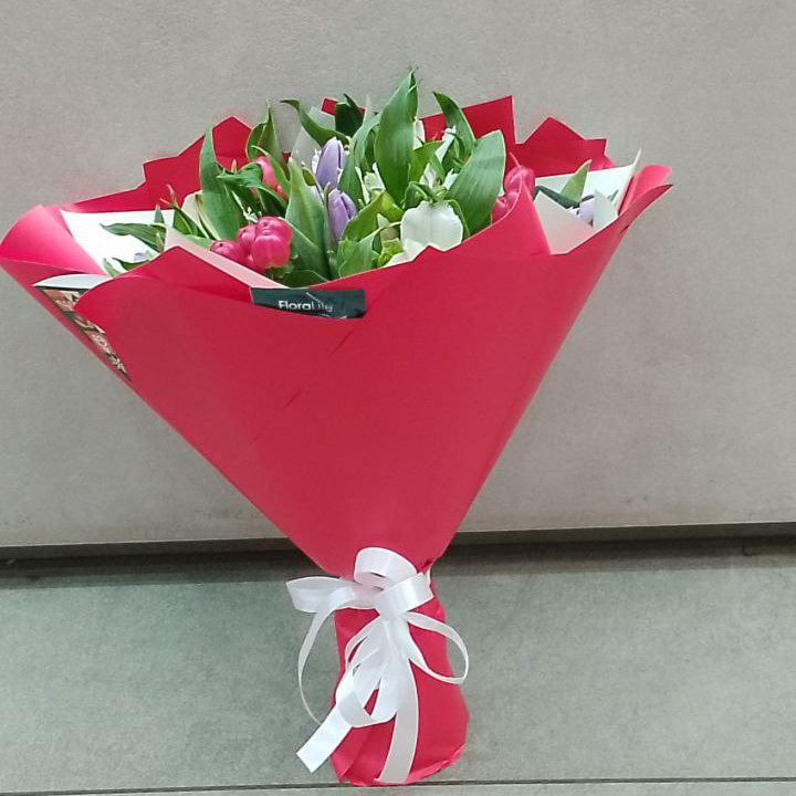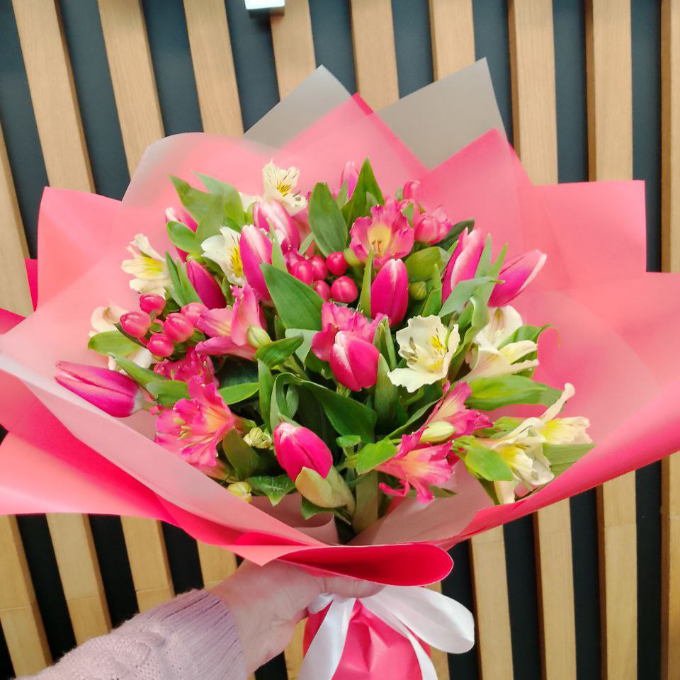 Букет из тюльпанов и альстромерий
