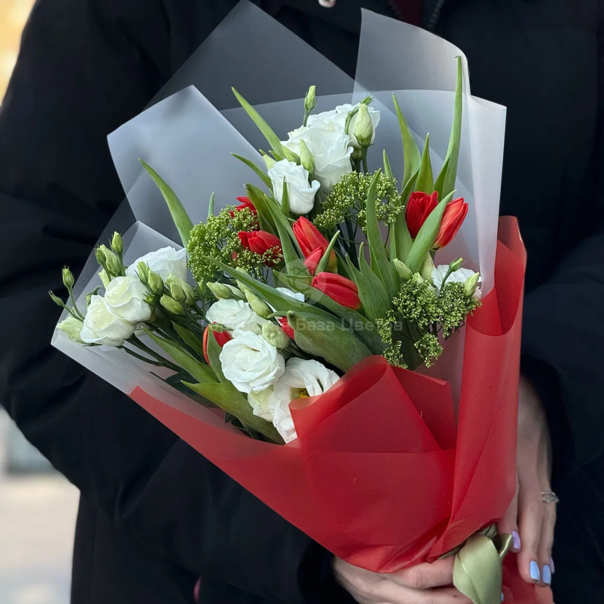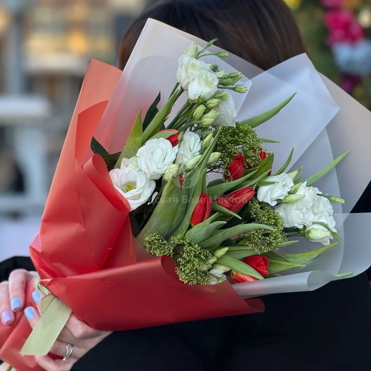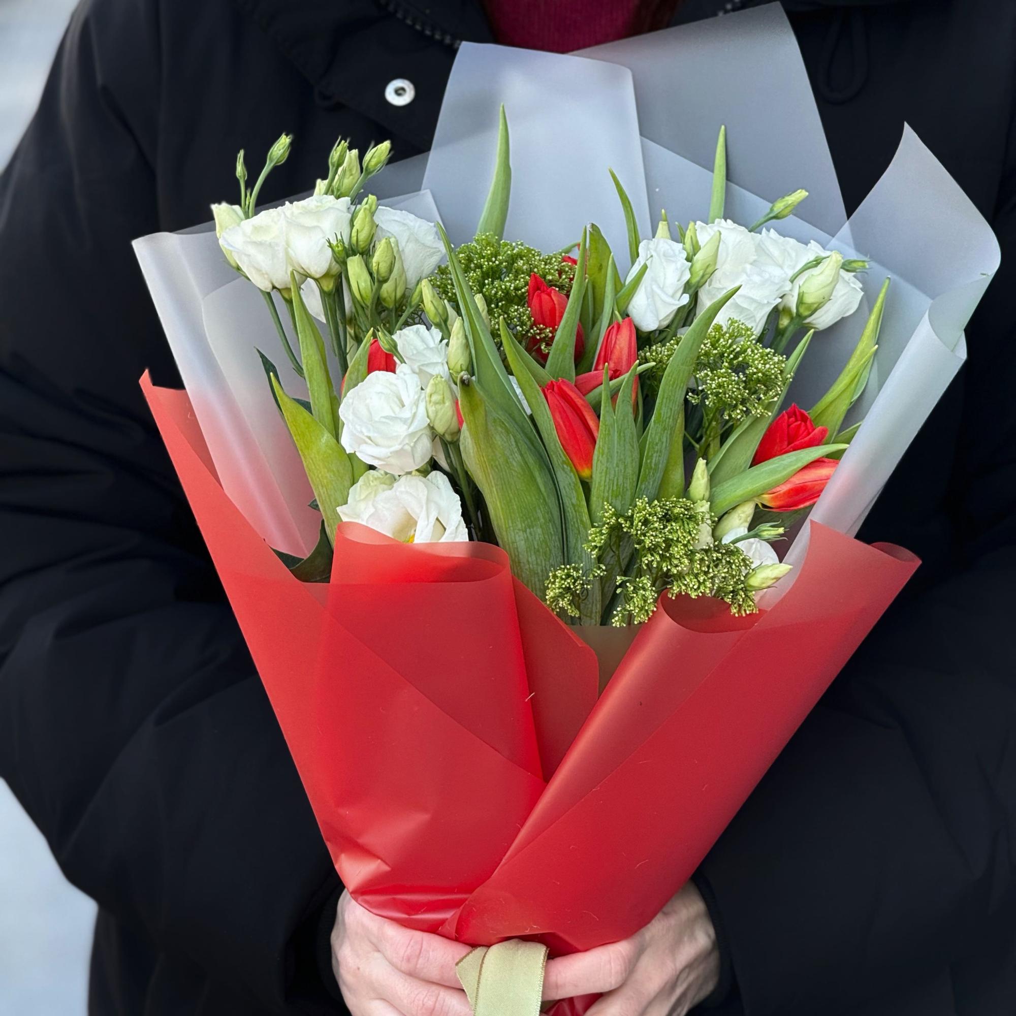 Большой букет из тюльпан и трахелиума