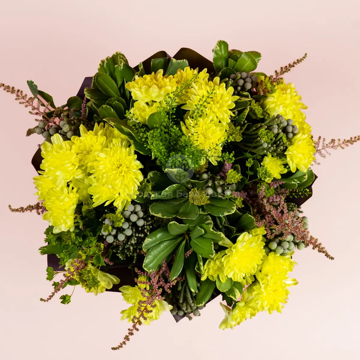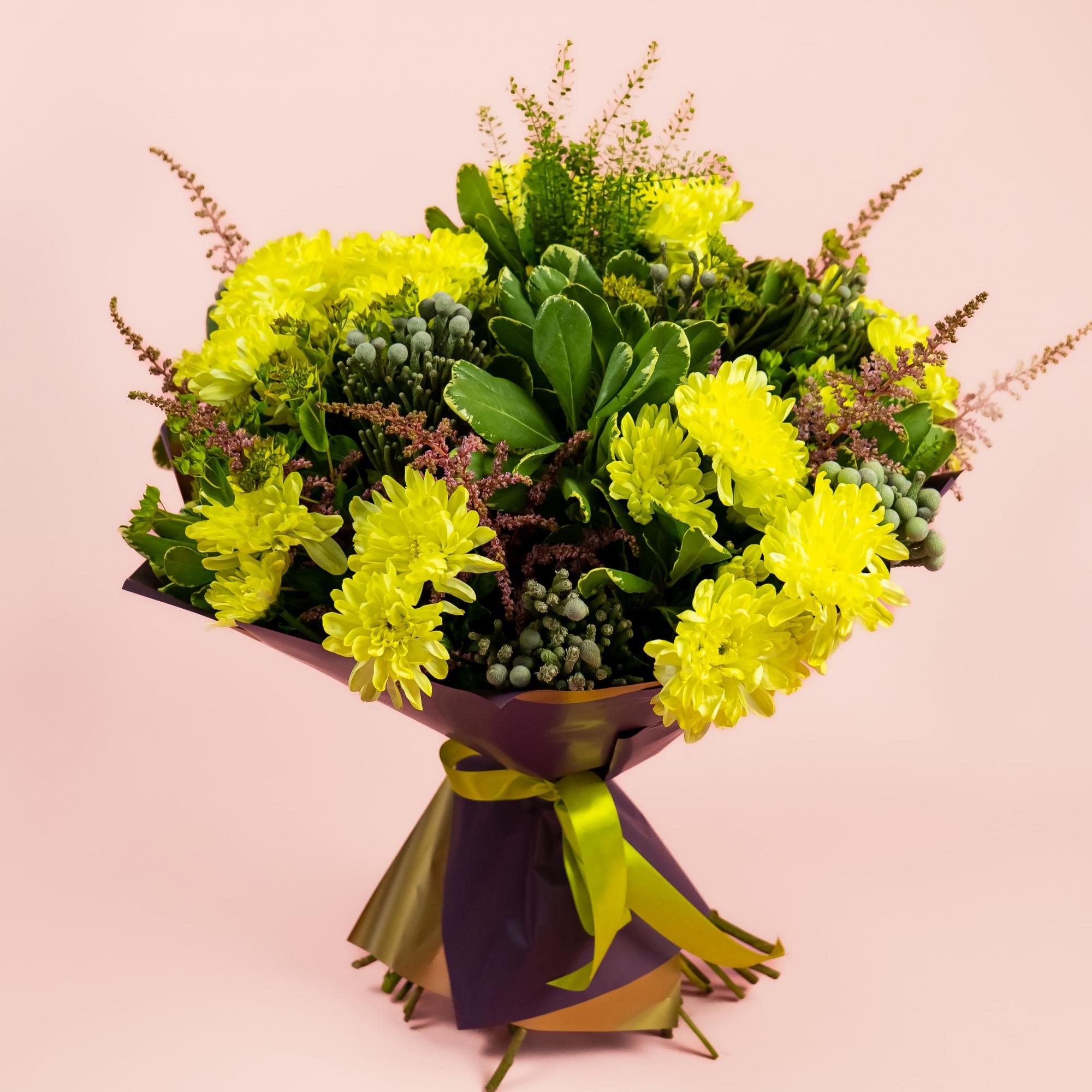 Букет из жёлтых кустовых хризантем