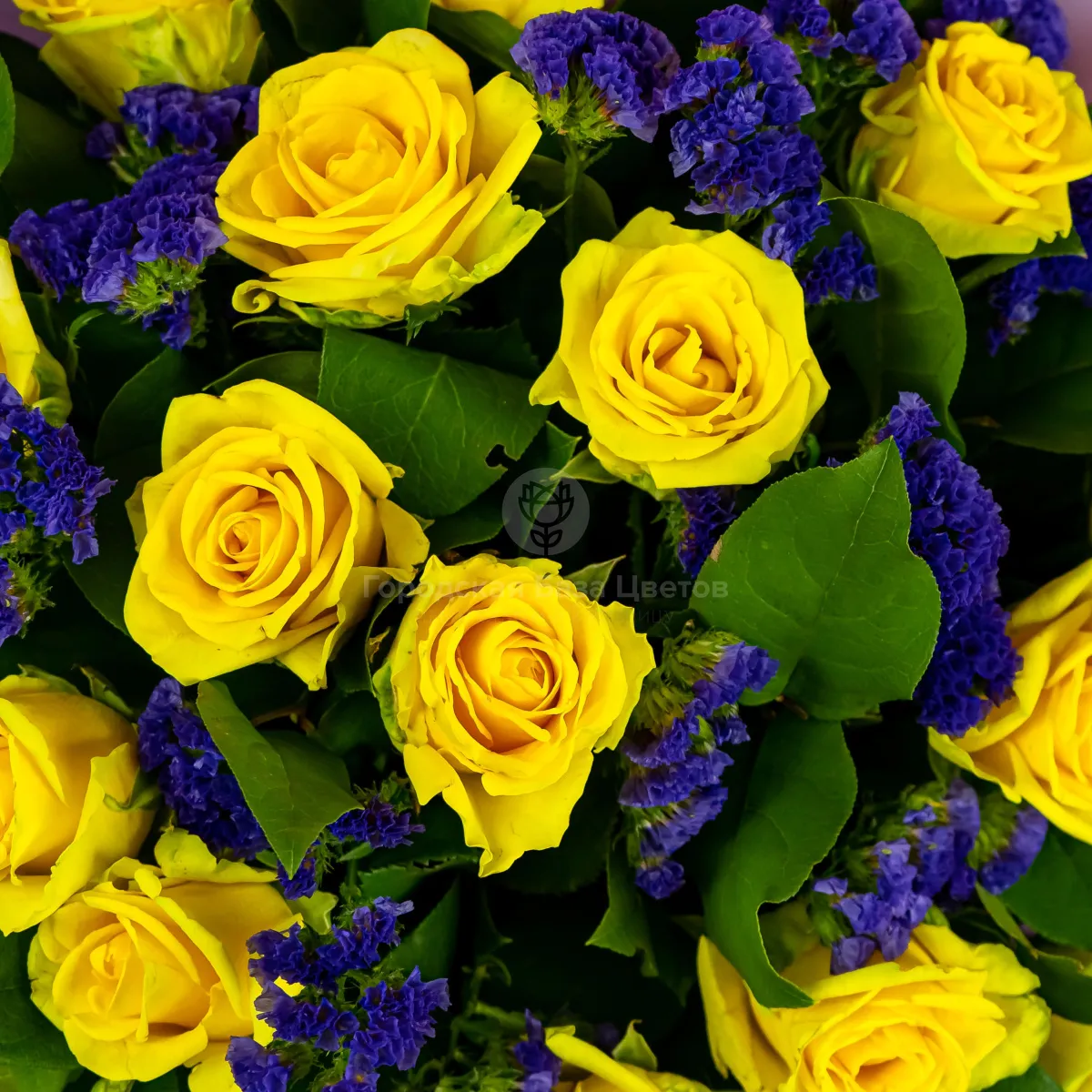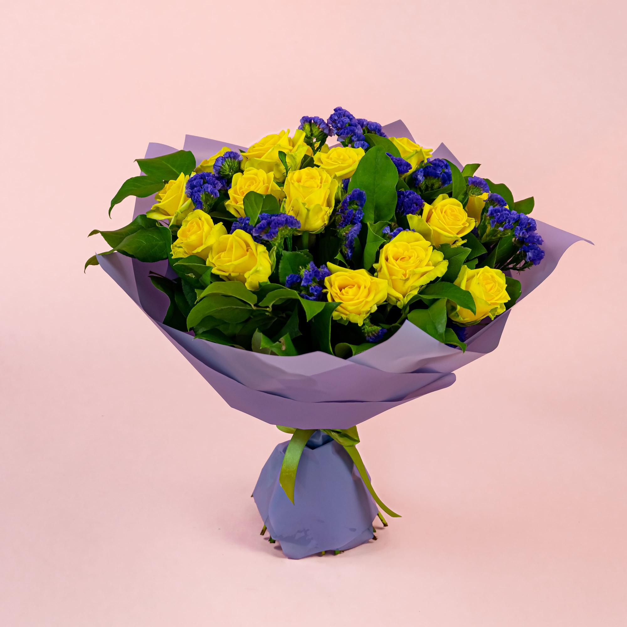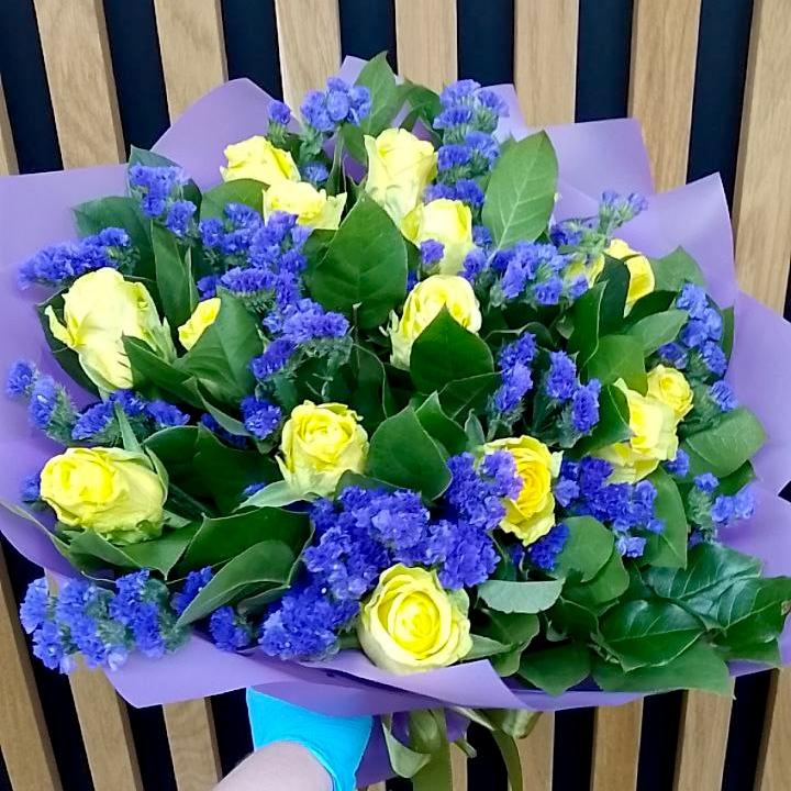 Букет из жёлтых роз и статицы