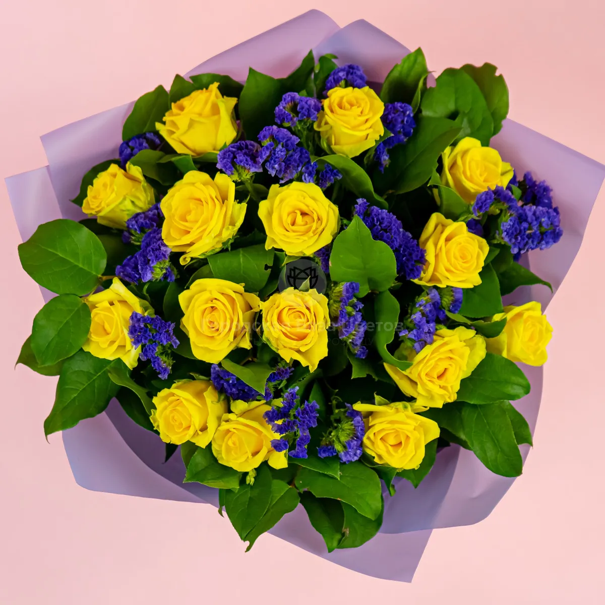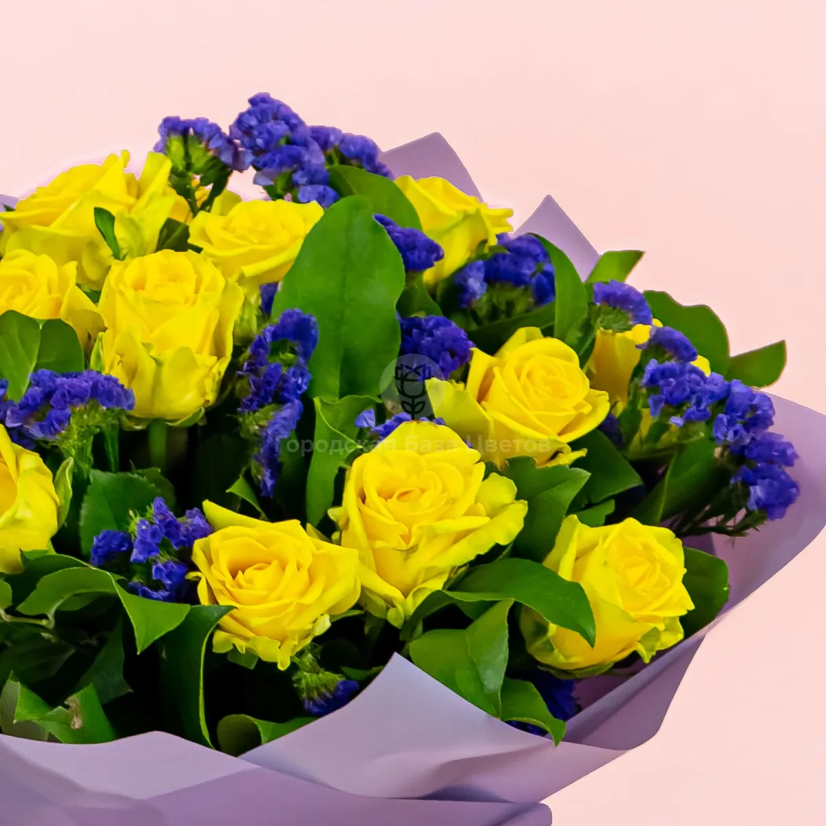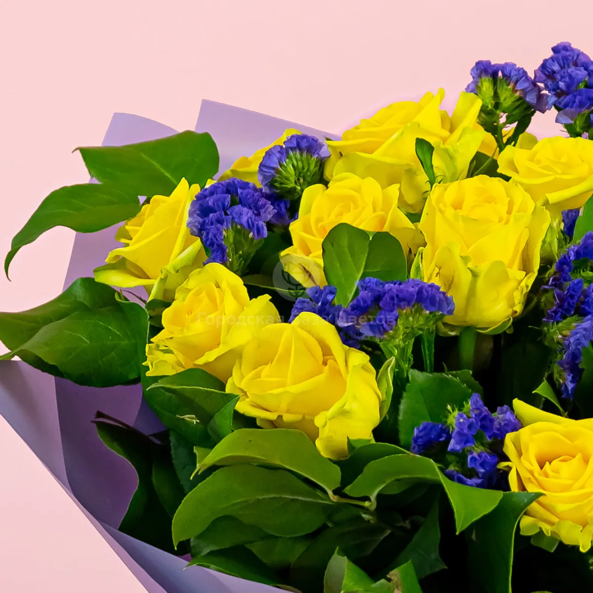 Букет из жёлтых роз и статицы