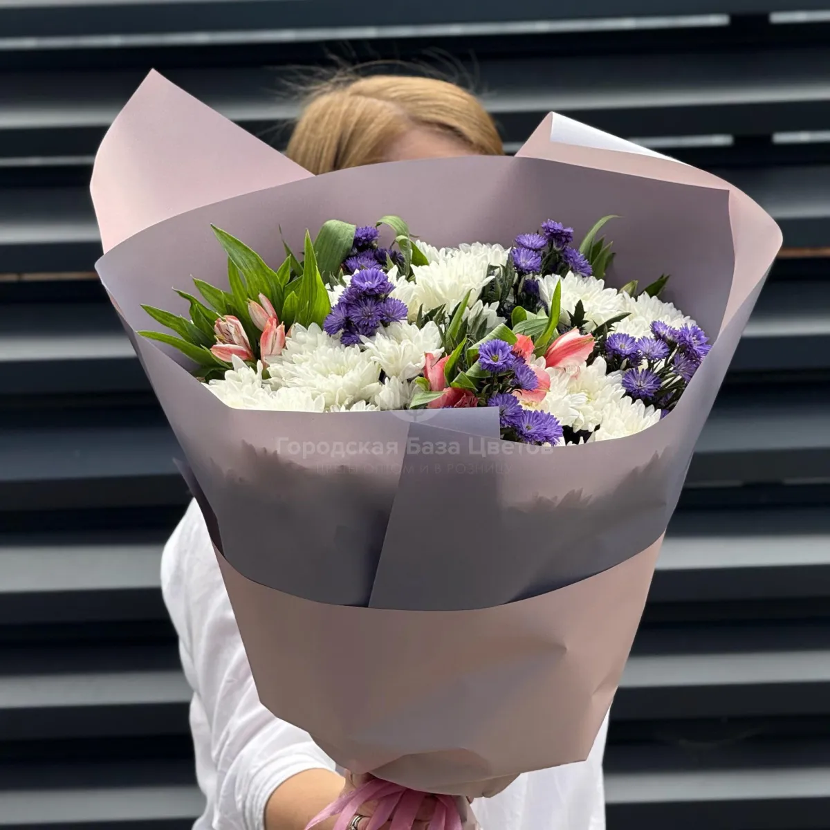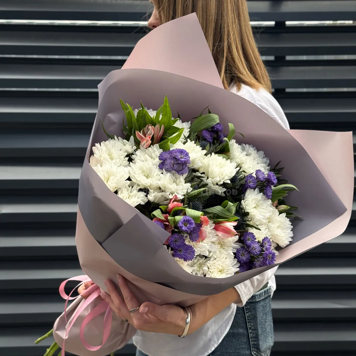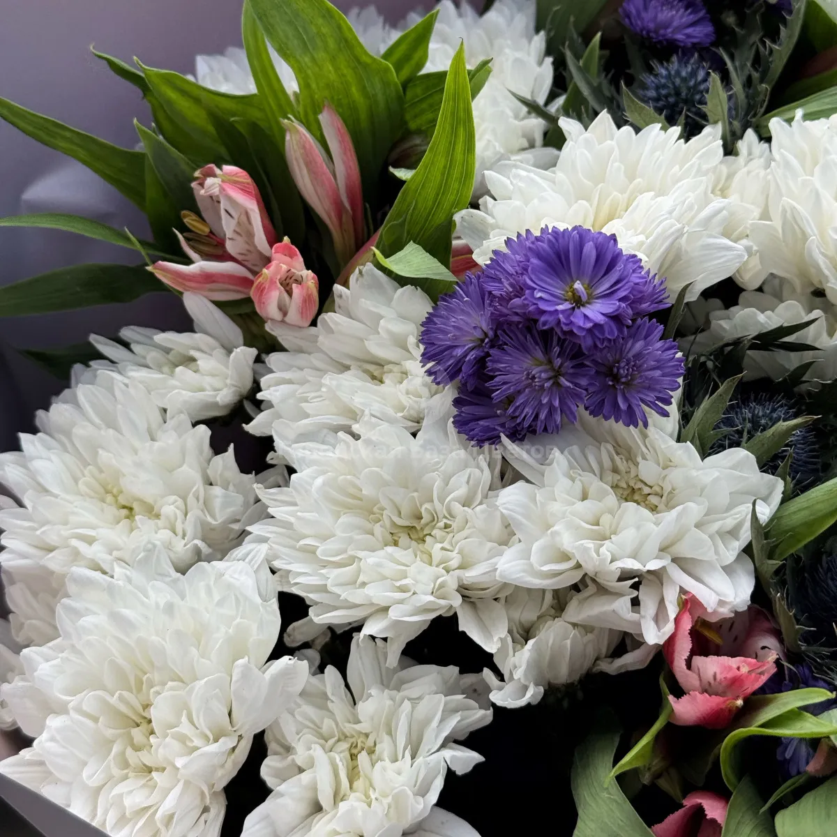 Букет хризантем, астер и альстромерии