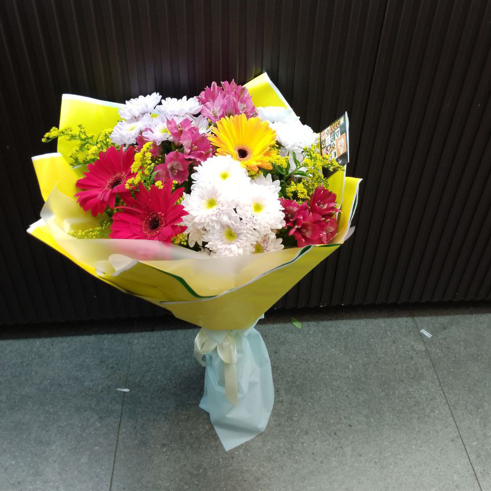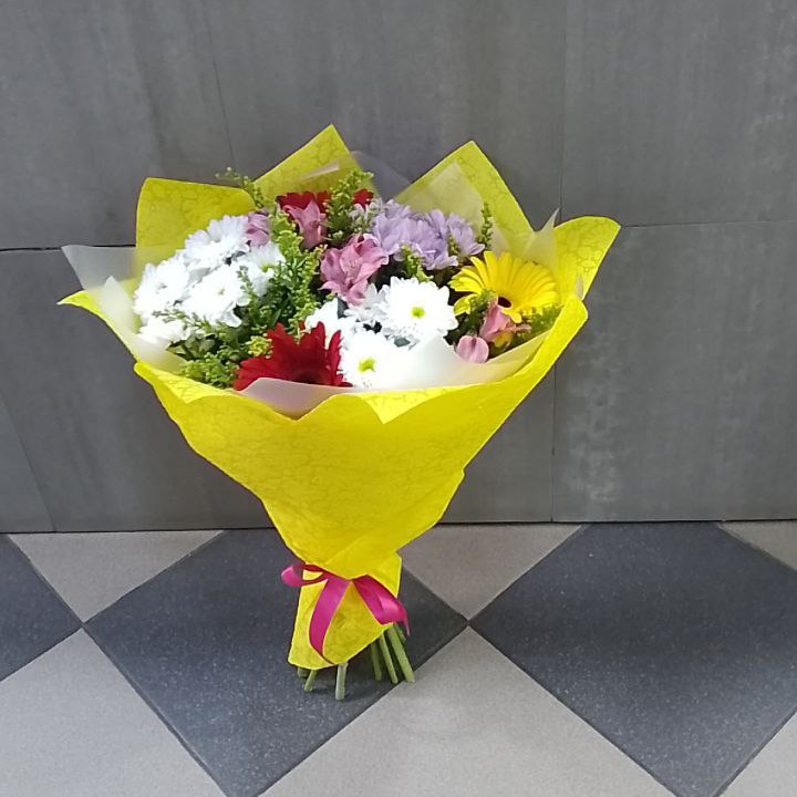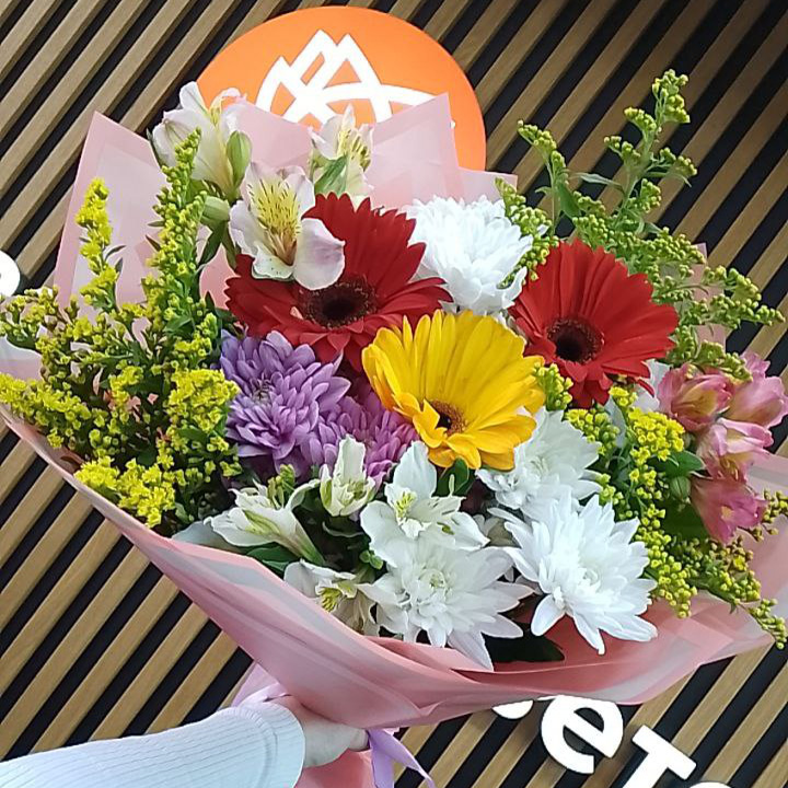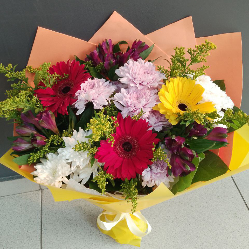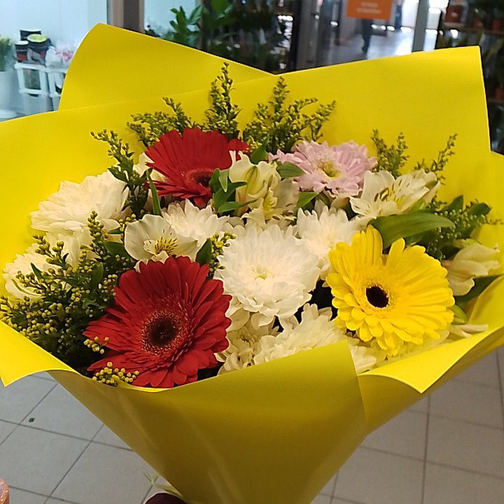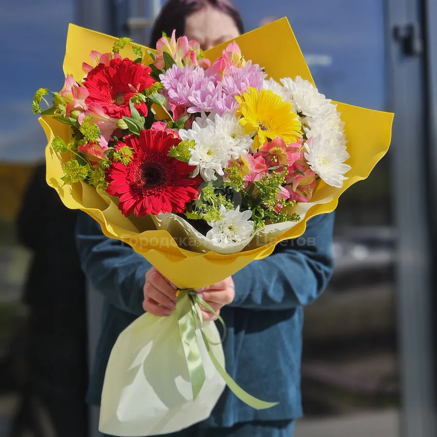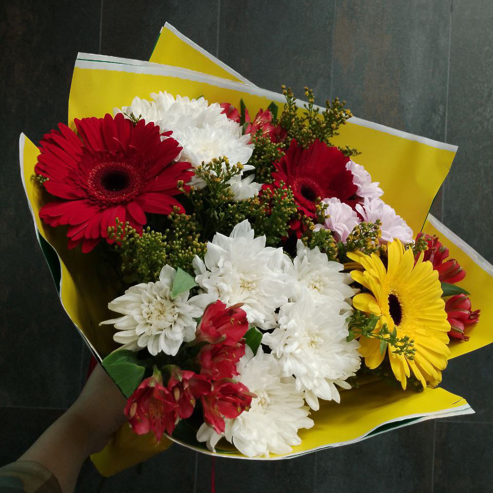 Букет хризантем, гербер и альстромерий