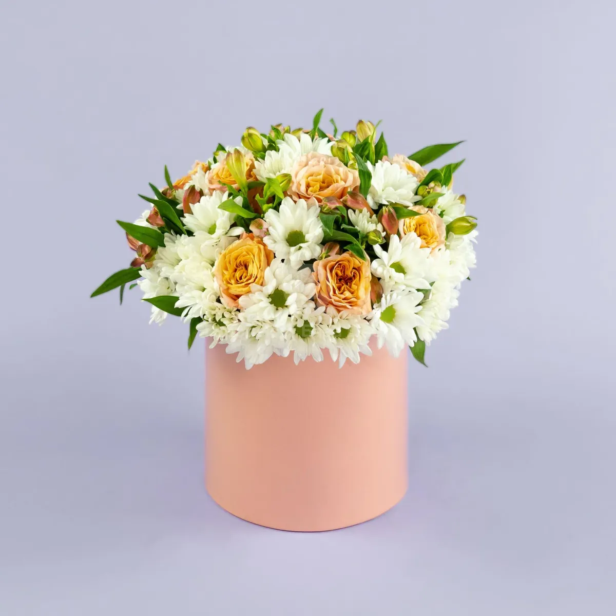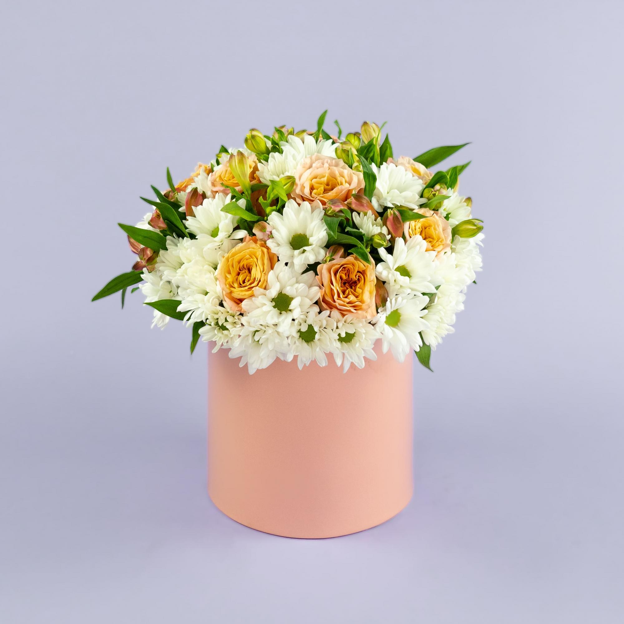 Розы и хризантемы в коробке