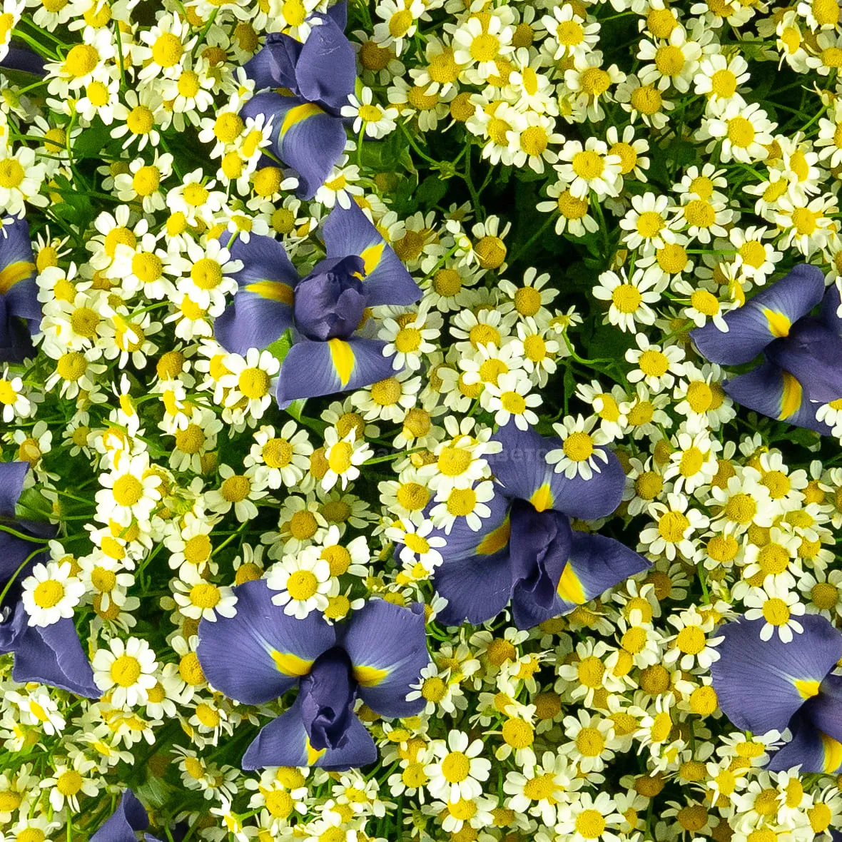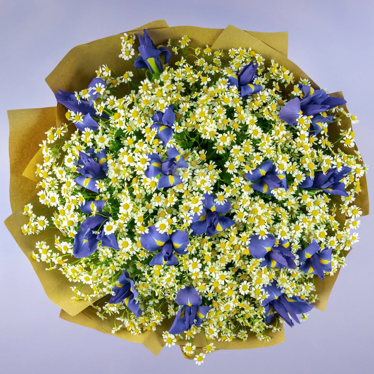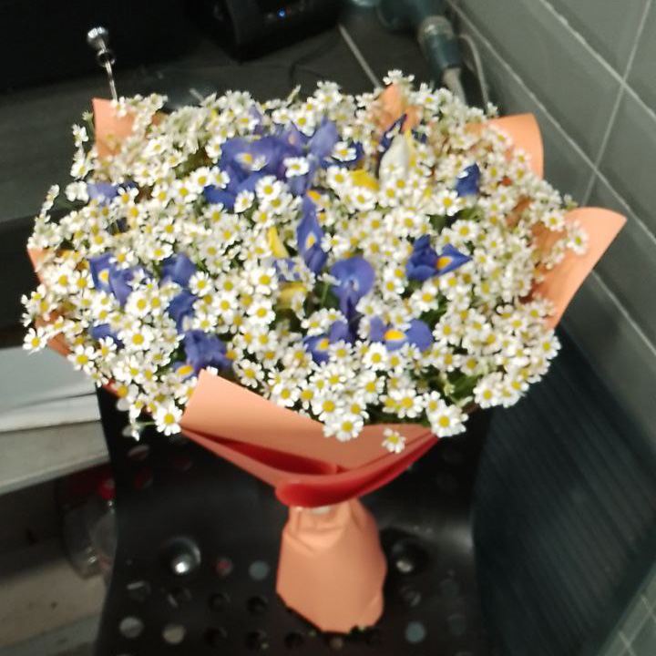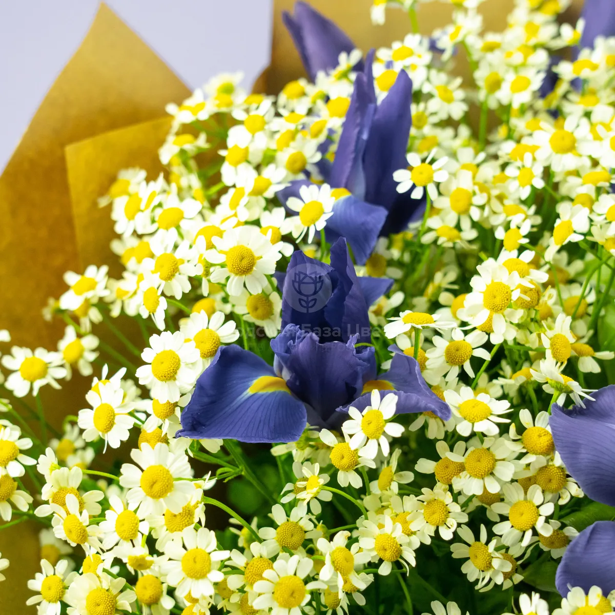 Букет из ирисов и ромашек