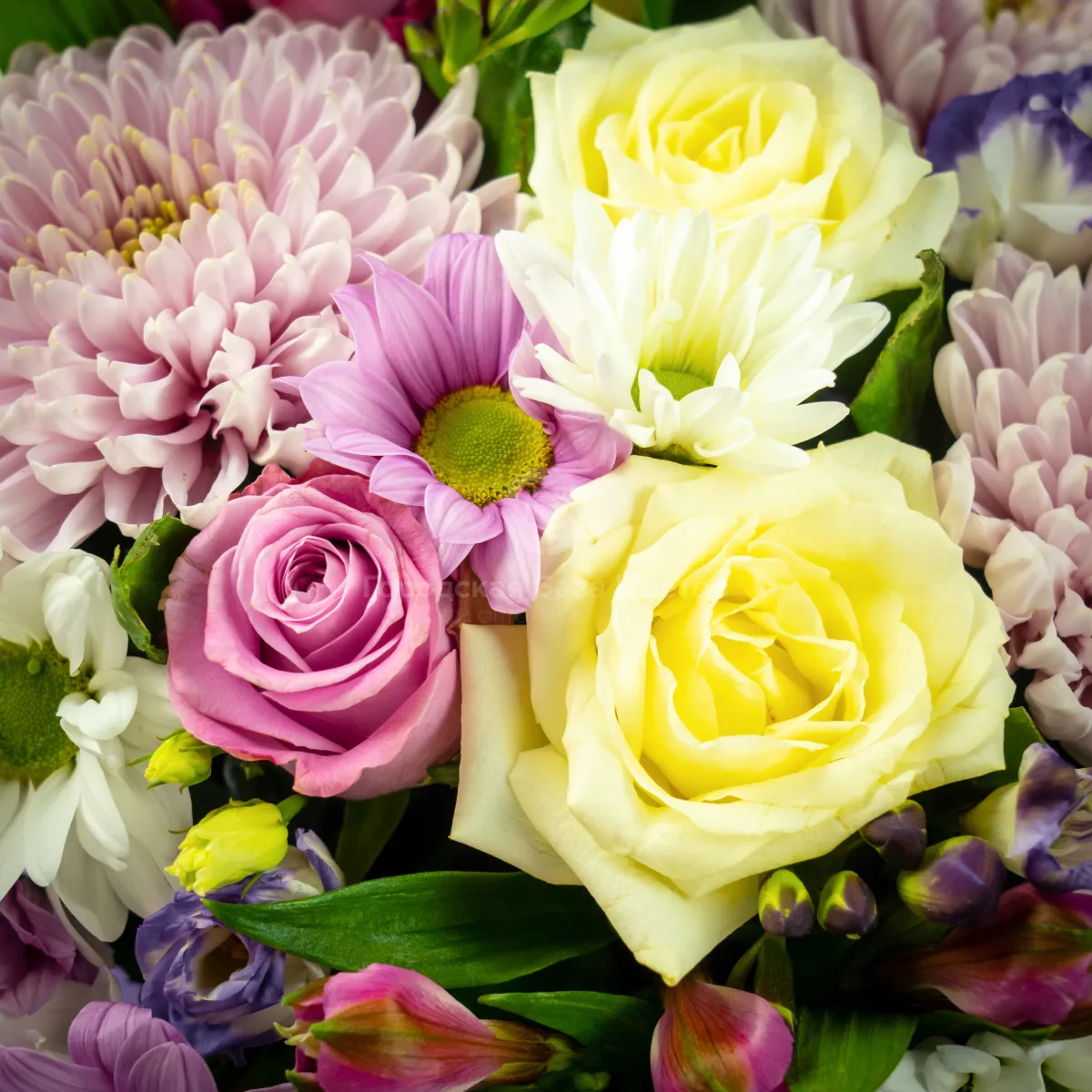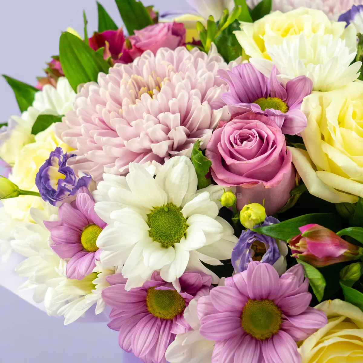 Хризантемы микс и розы (40 см) в коробке
