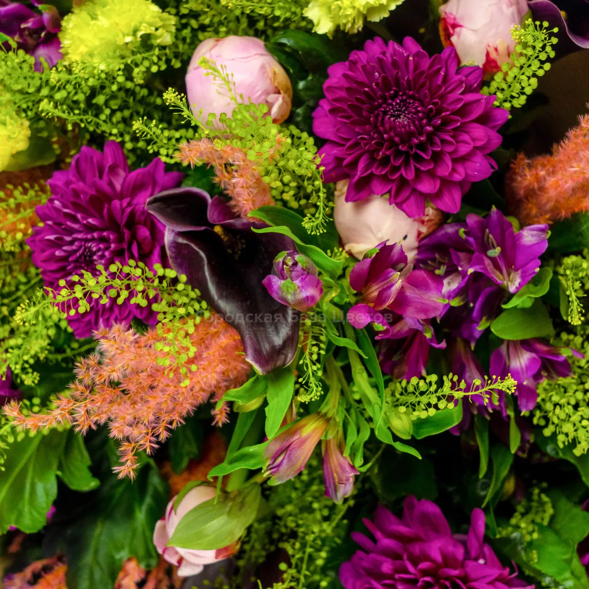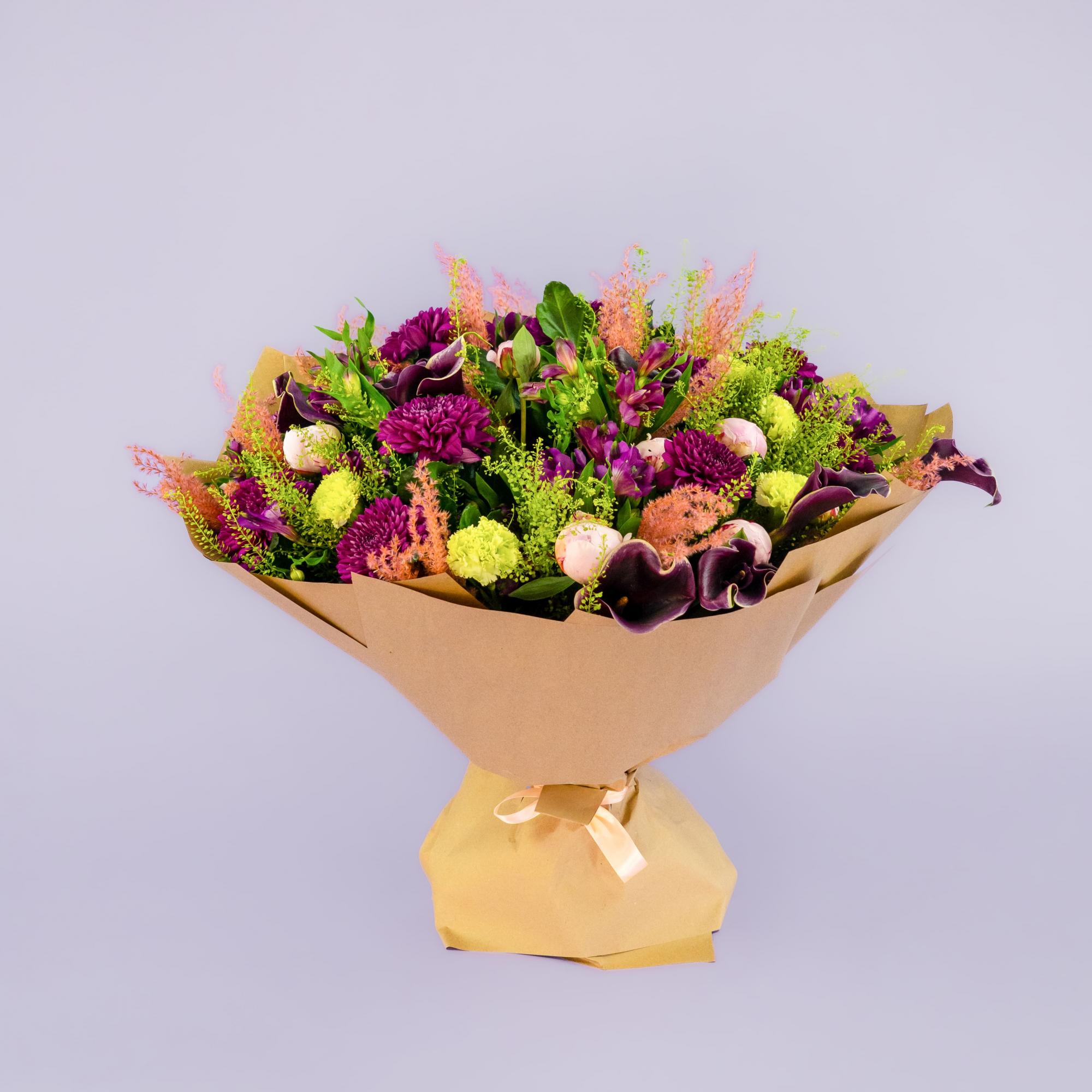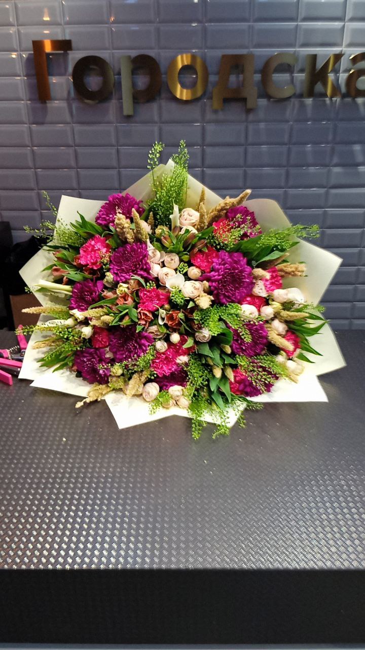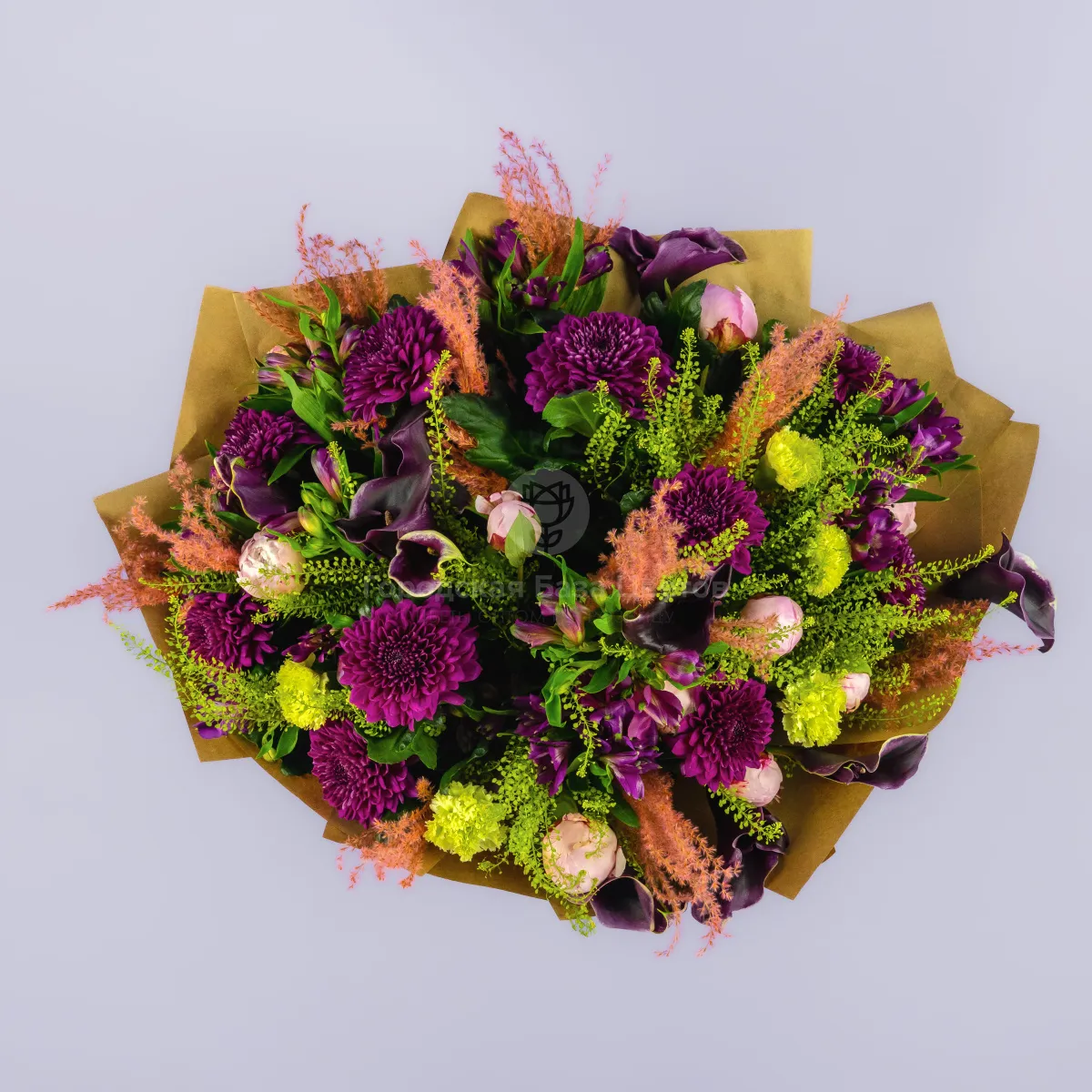 Букет их хризантем, альстромерий, пионов