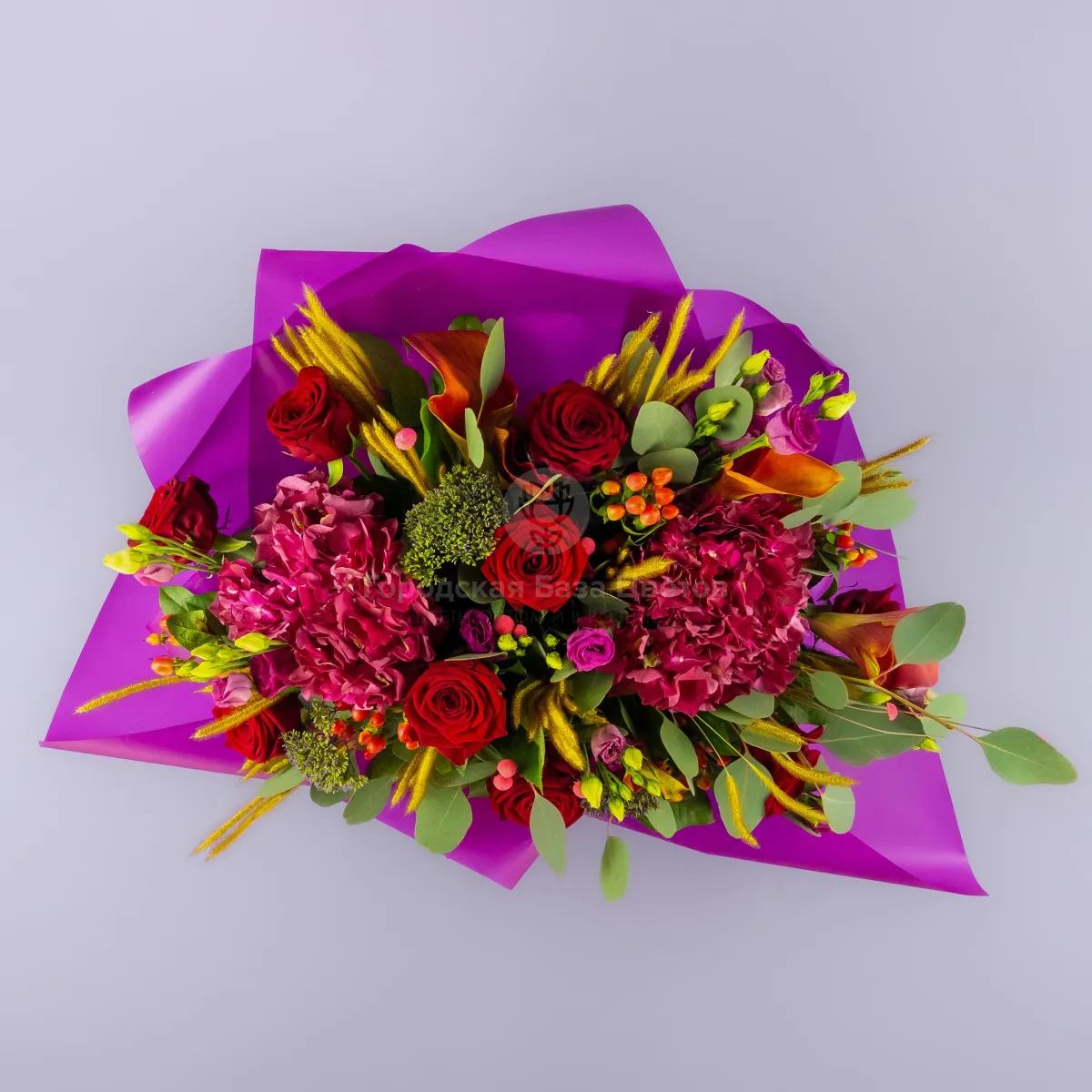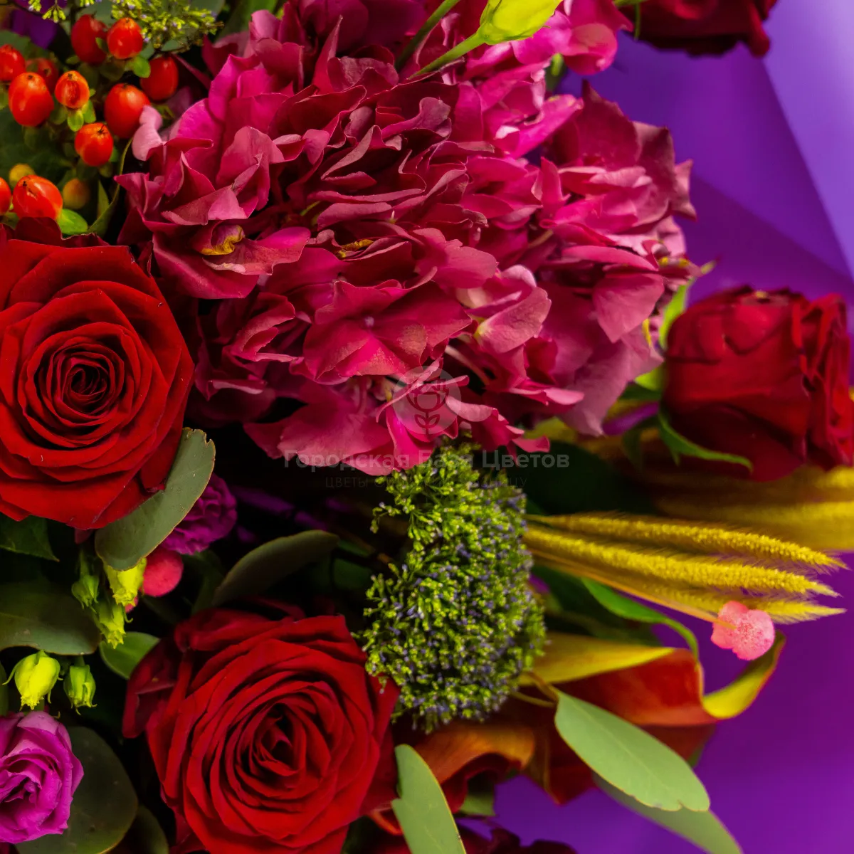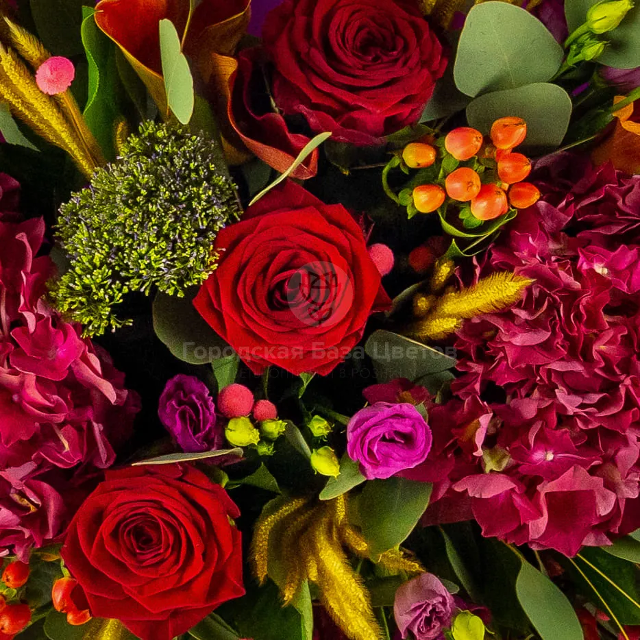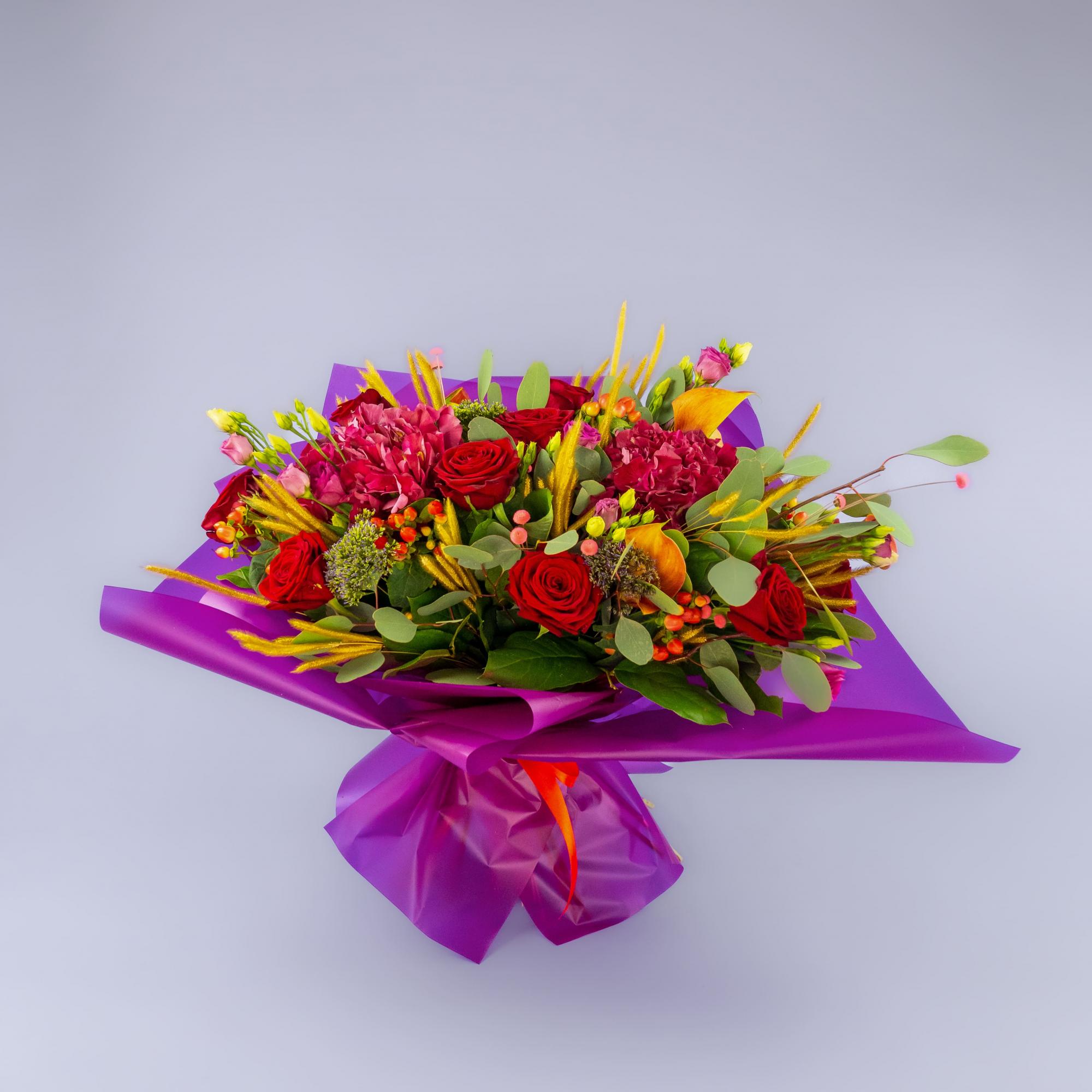 Букет из роз, гортензий и сухоцветов