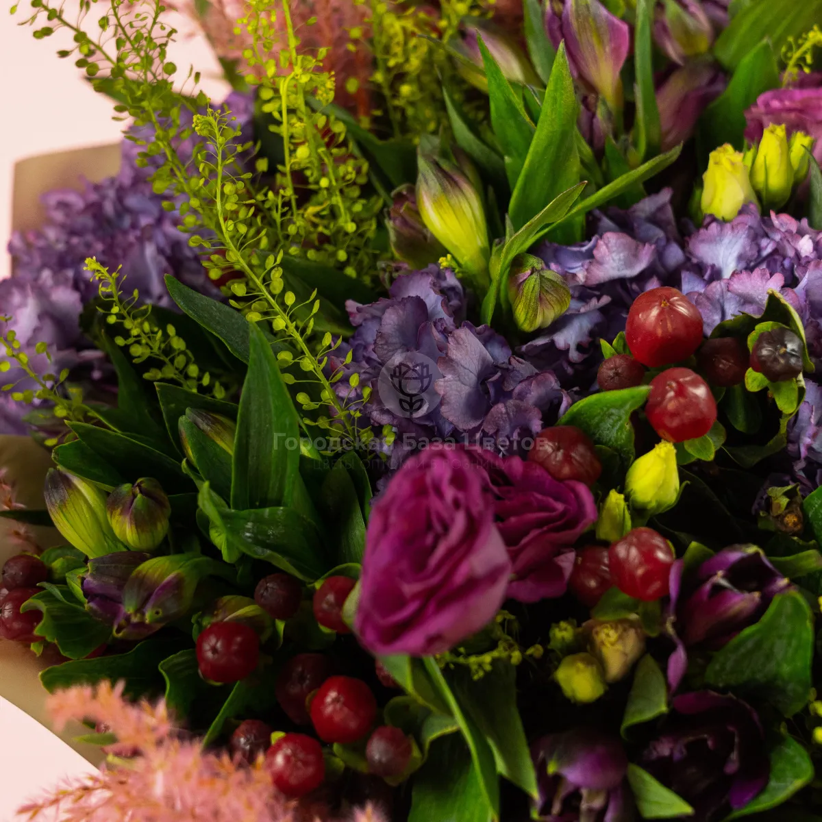 Букет из альстромерий, гортензий, эустом