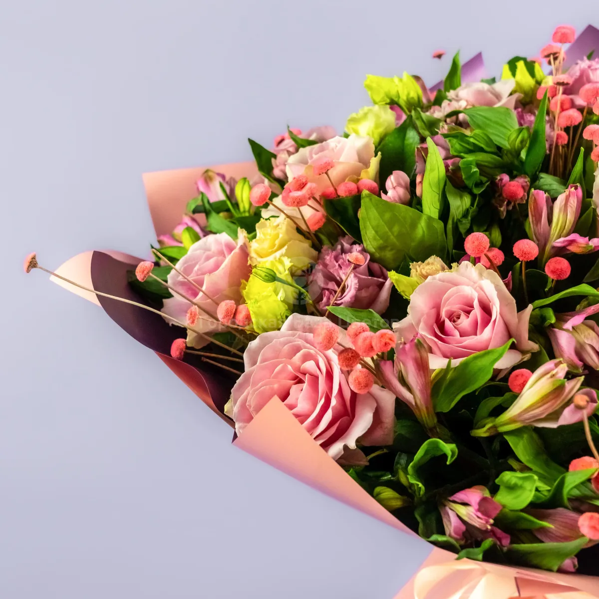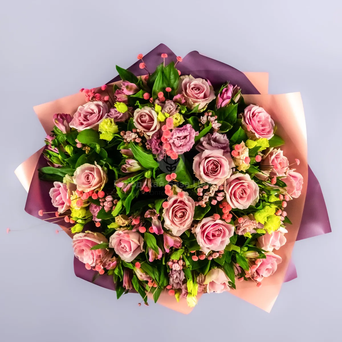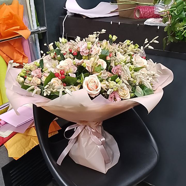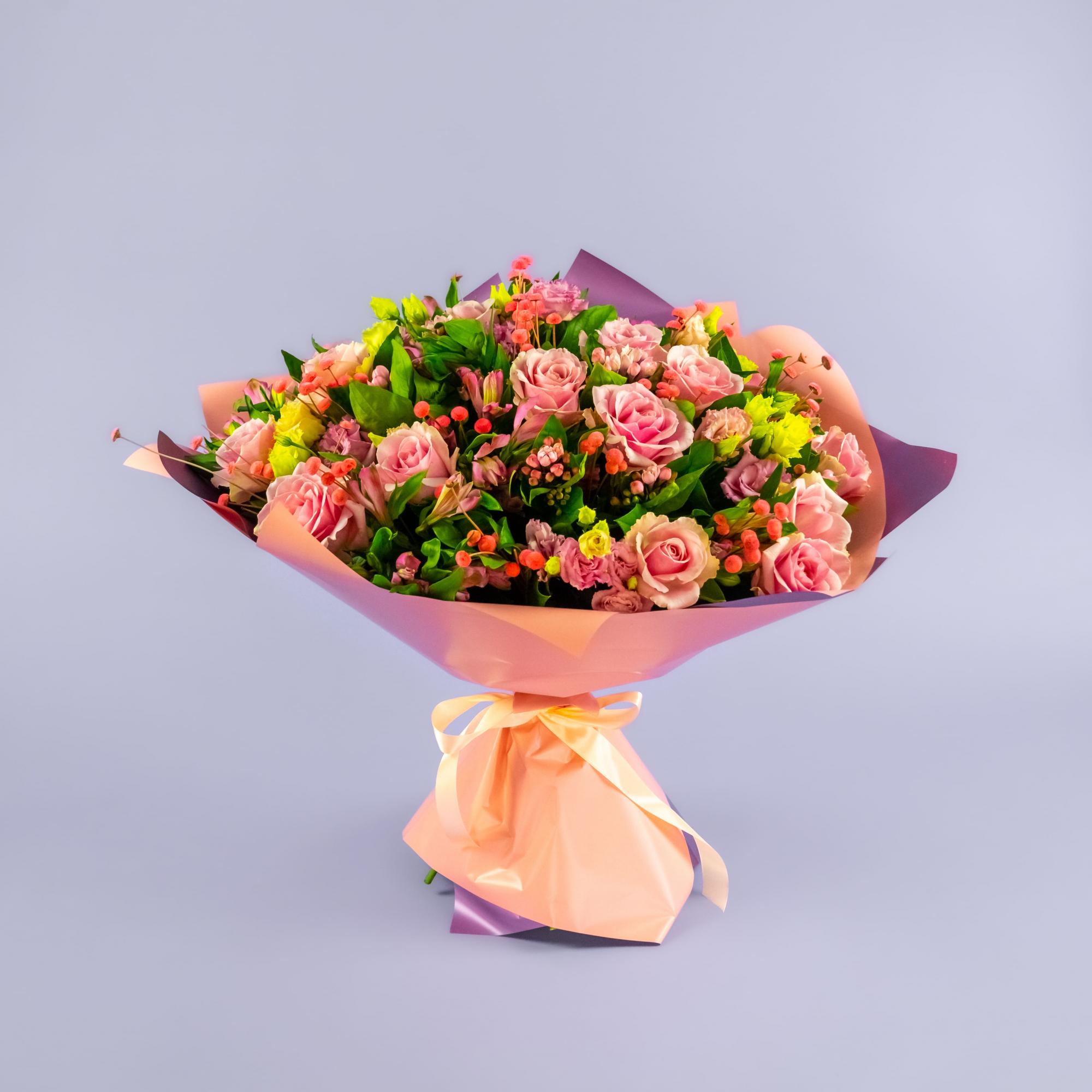 Букет из роз, альстромерий и эустом