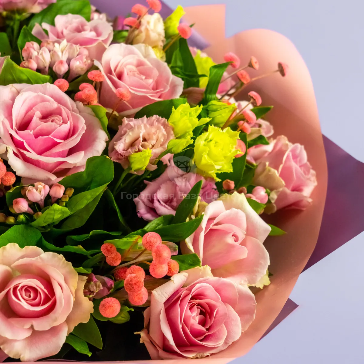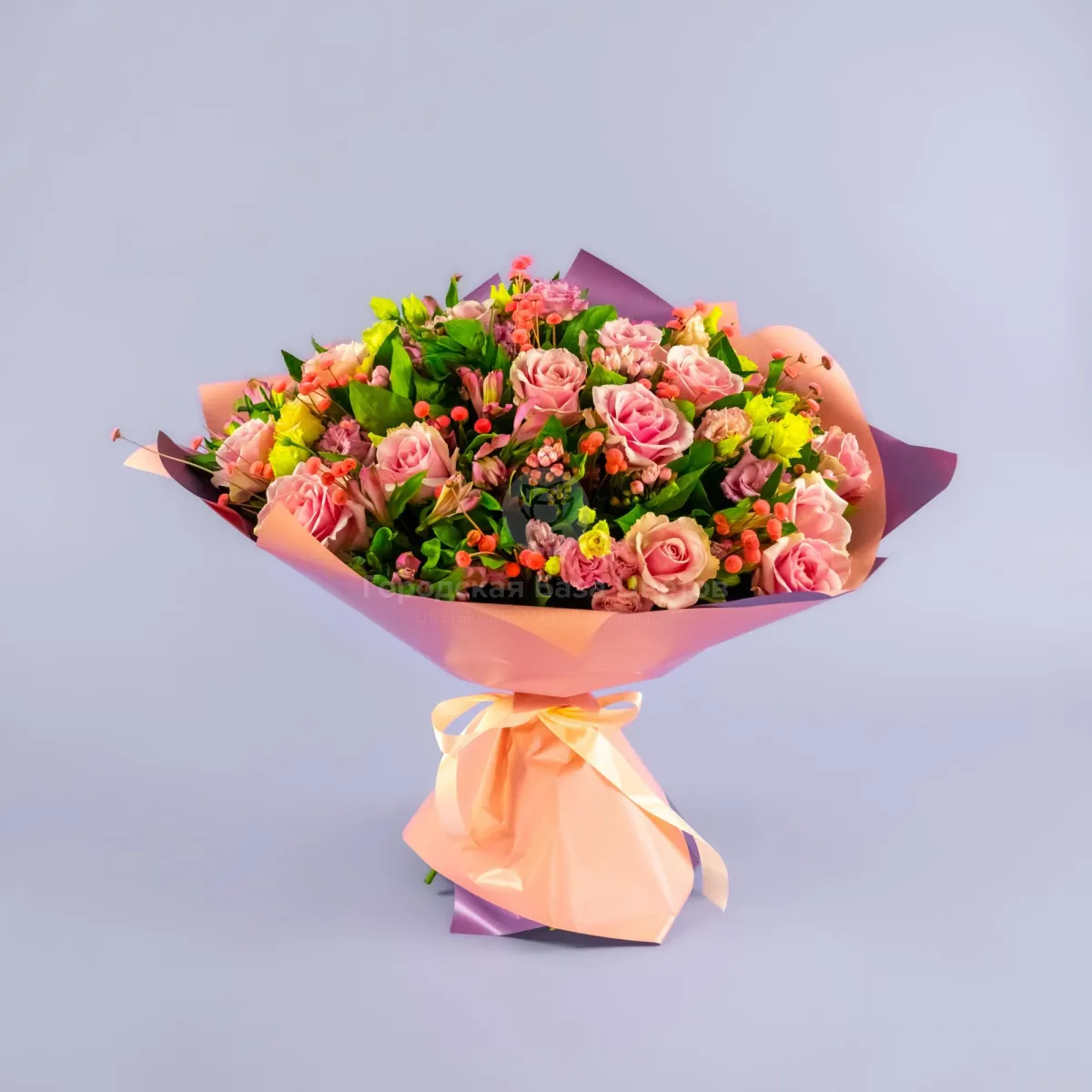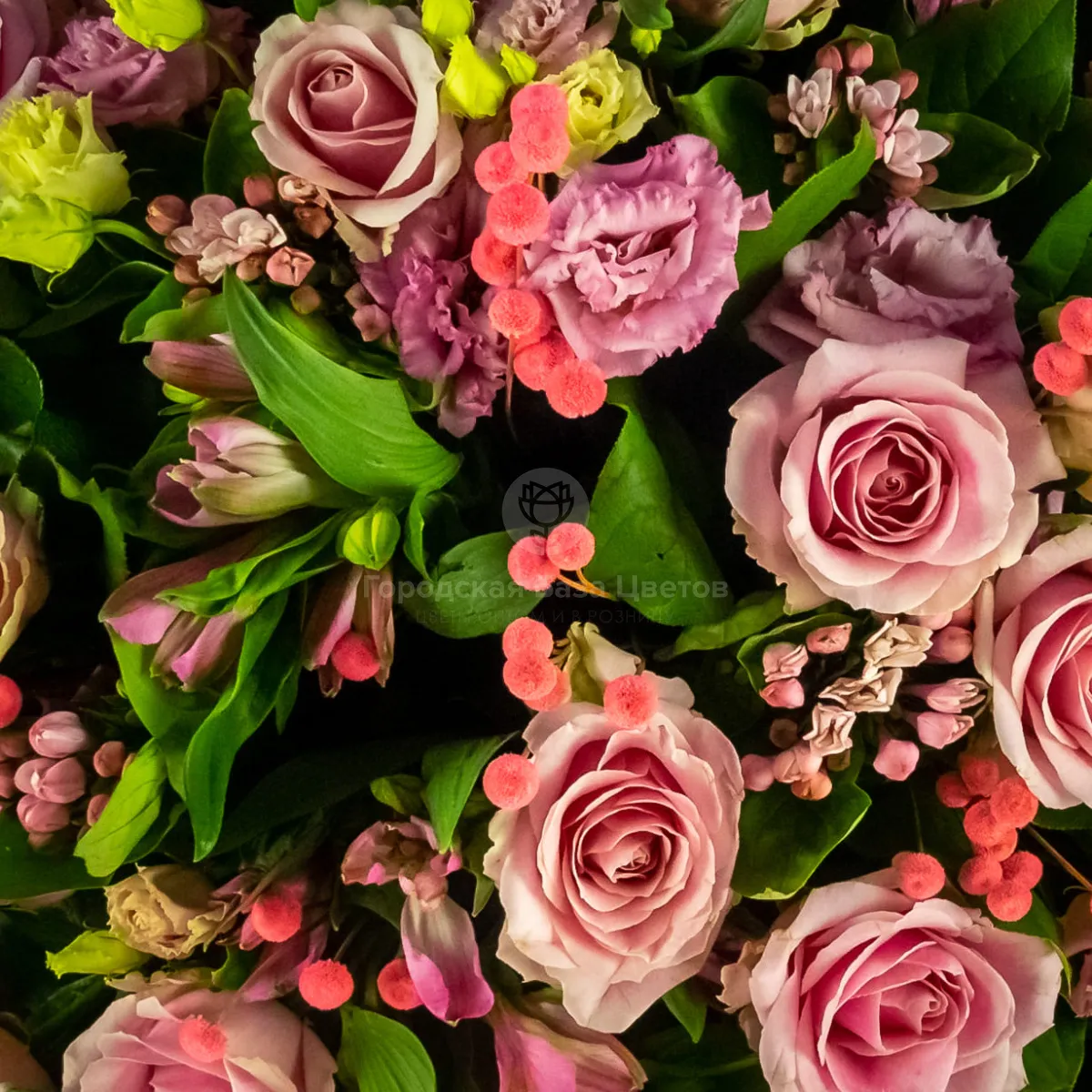 Букет из роз, альстромерий и эустом