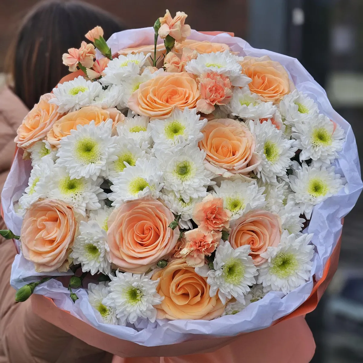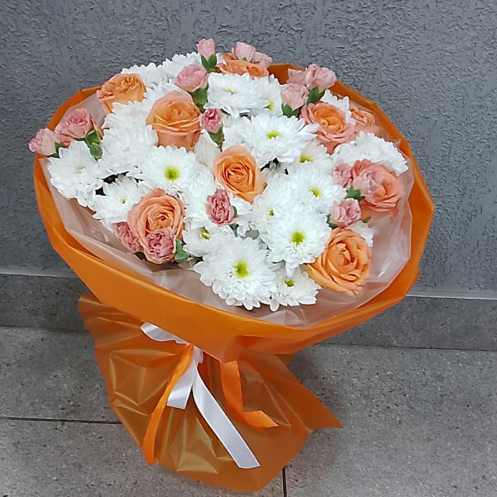 Букет роз, гвозик и хризантем