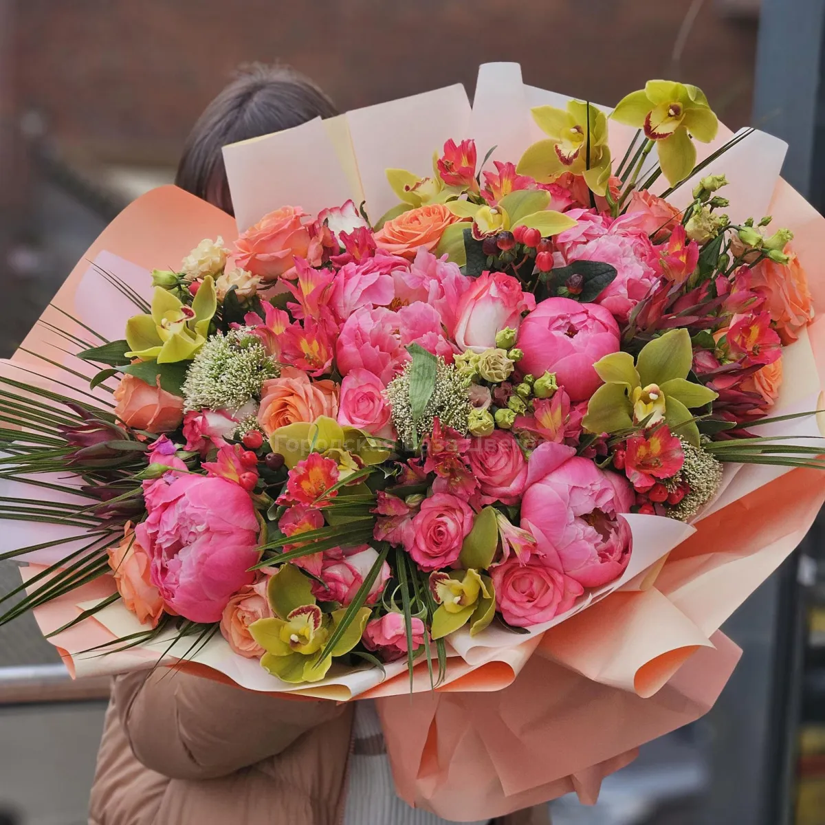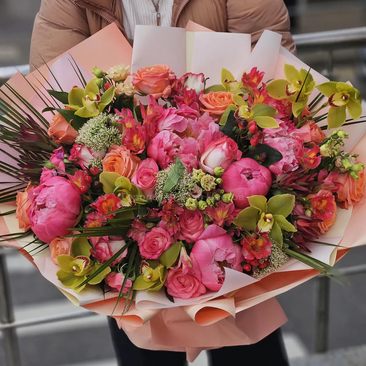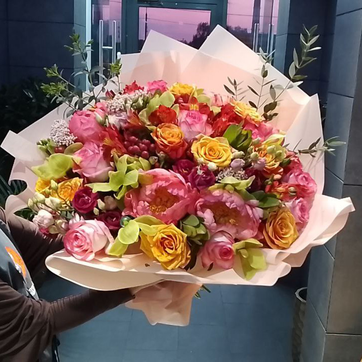 Букет роз, пионов и альстромерий