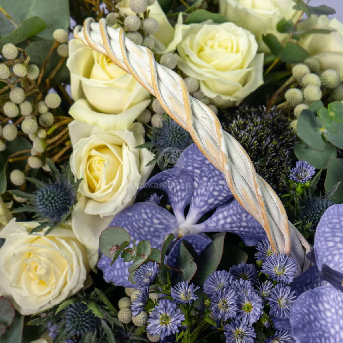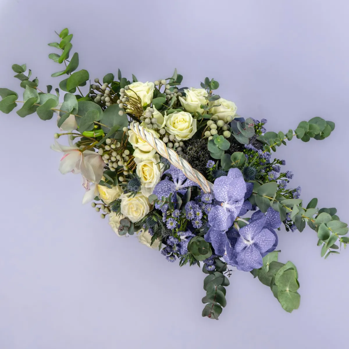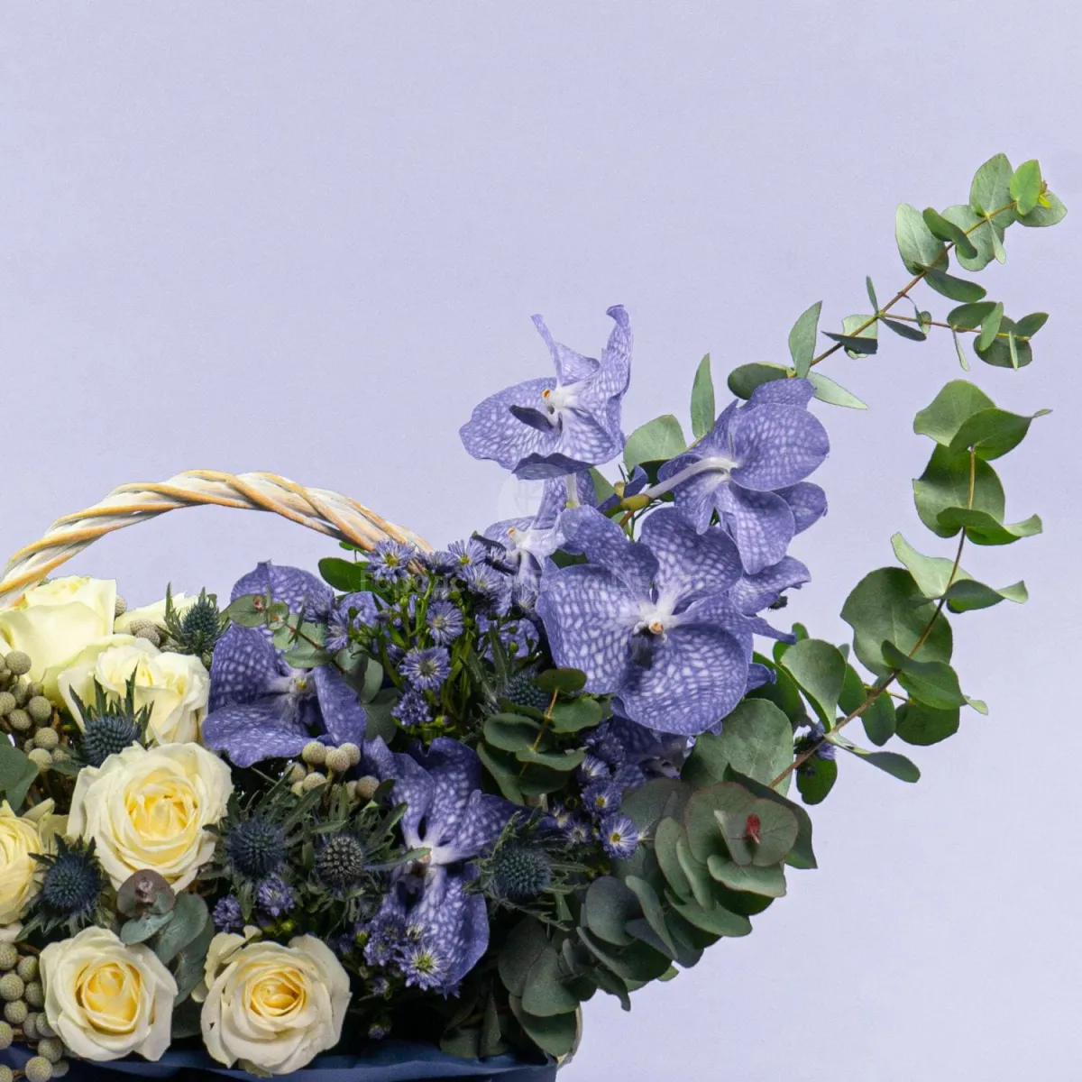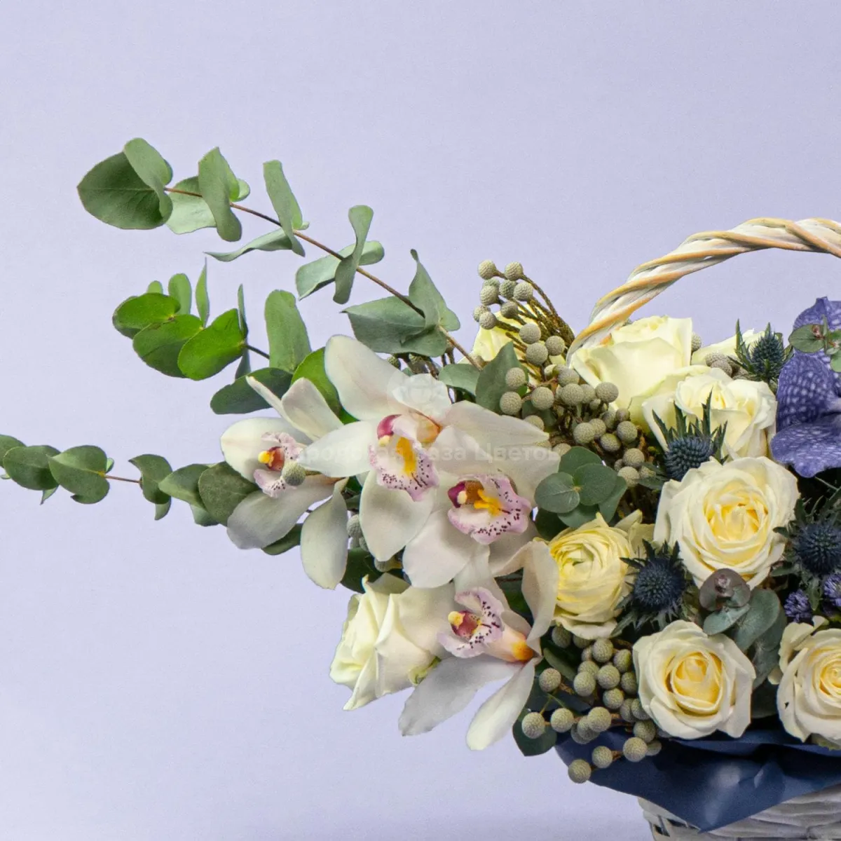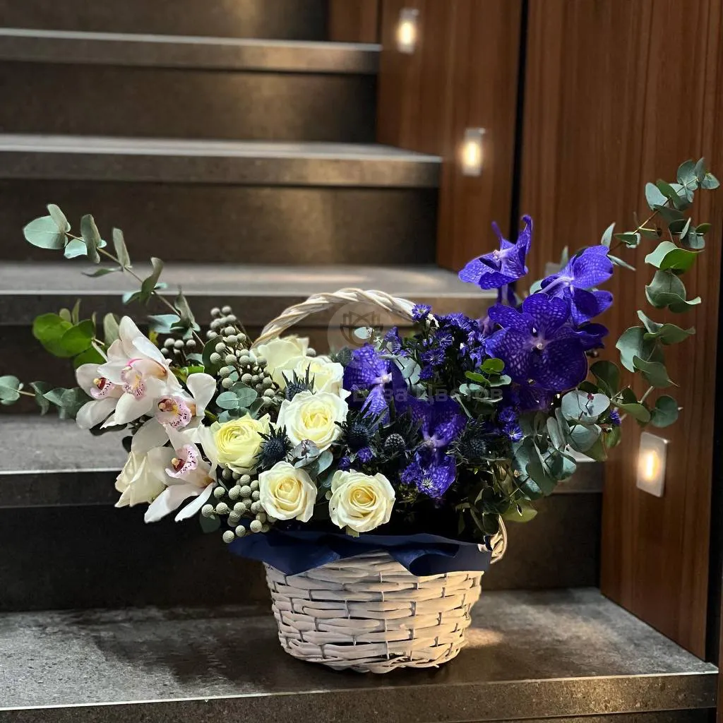 Орхидеи и розы в корзине
