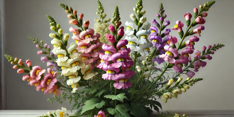 Крупные сорта антирринума могут достигать в высоту до 100 см. Цветы имеют один толстый стебель, содержащий на себе обилие тонких темно-зеленых листьев и шапочку из множества бутонов, которые собираются в пышную кисточку. В числе характерных особенностей растения такие: