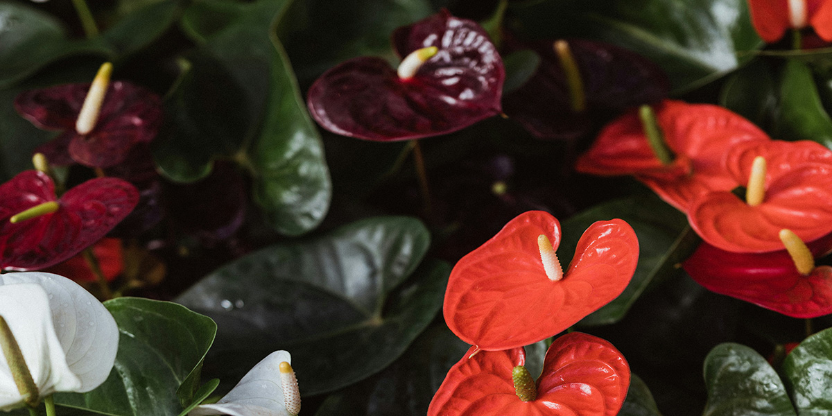 Цветовая гамма антуриума весьма разнообразна: можно встретить красные, розовые, белые, зеленые, фиолетовые и даже черные оттенки.